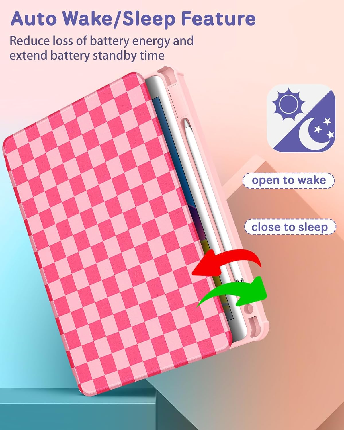 for iPad A16 Case - for iPad 10th Generation Case 10.9 Inch Women Girls Cute Girly Teens Kids Pretty Checkered Unique Aesthetic Rotating Stand Folio Tablet Cover for Apple 10/11 2025