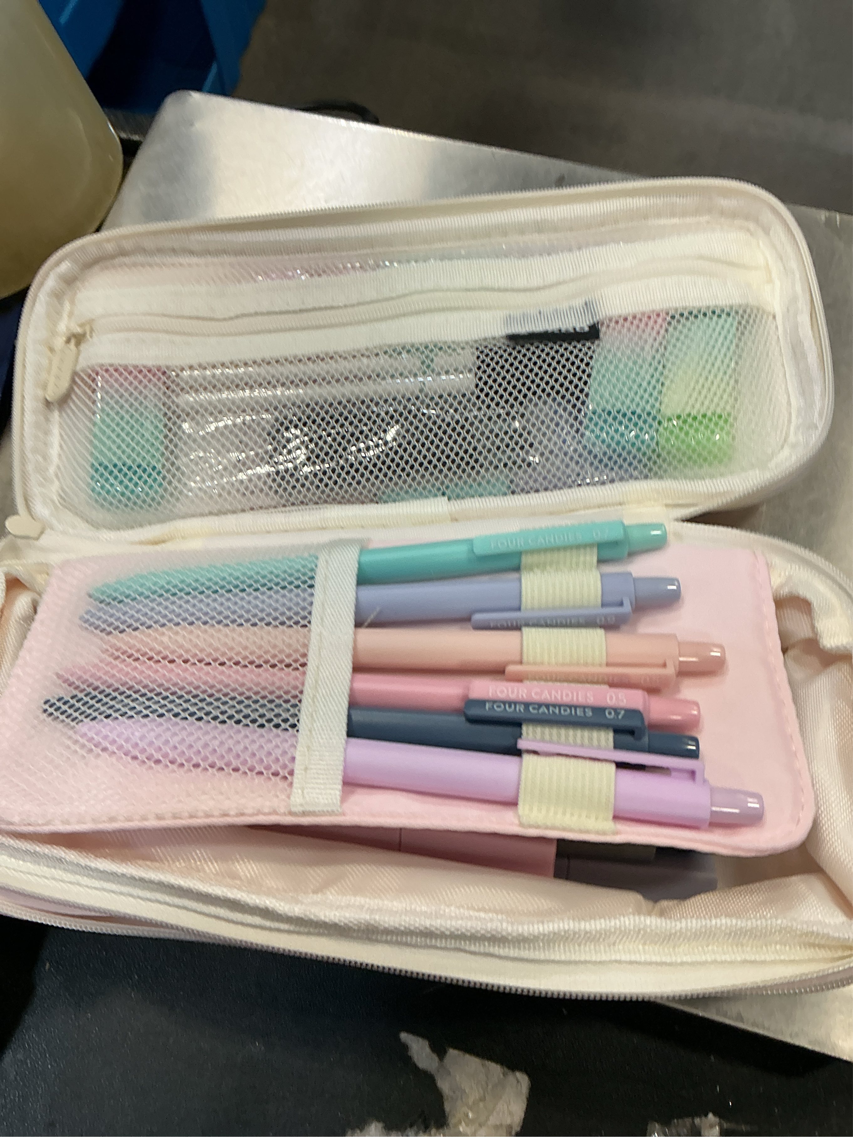 Four Candies 39 PCS Aesthetic School Supplies with Cute Pen Case, 12 Pastel Highlighters, 5 Black Ink Gel Pens, 6 Mechanical Pencils Set for Students Stationary College Essentials (Pink)