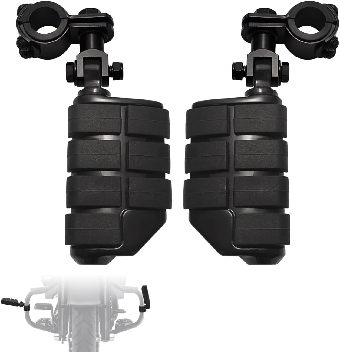 [3-Piece Clamp]: The included 3-piece clamp provides a secure and stable attachment to your motorcycle's engine guard or crash bars. It offers a strong grip, preventing the pegs from slipping or shifting during your ride, even on bumpy terrains;Soft rubber dampens vibration to improve riding comfort;