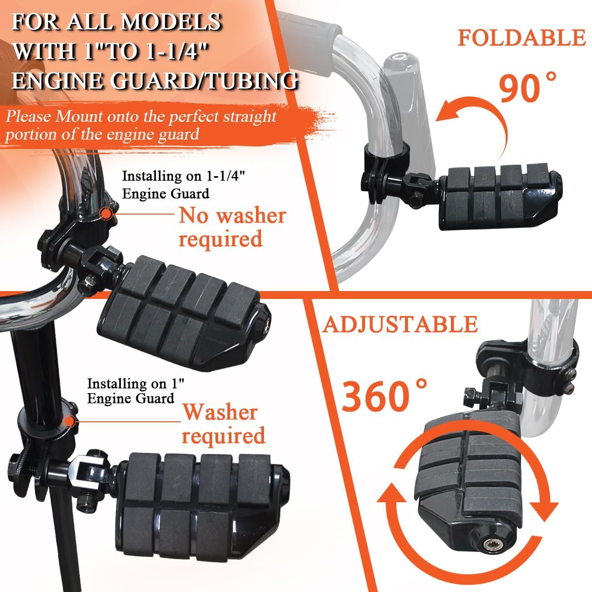 FOVPLUE 1",1.25"Highway Footpegs, Adjustable Highway Peg w/ 3-Piece Clamp for Harley Touring Softail Dyna Sportster models w/25mm-32mm Engine Guard/Tubing,Black#2
