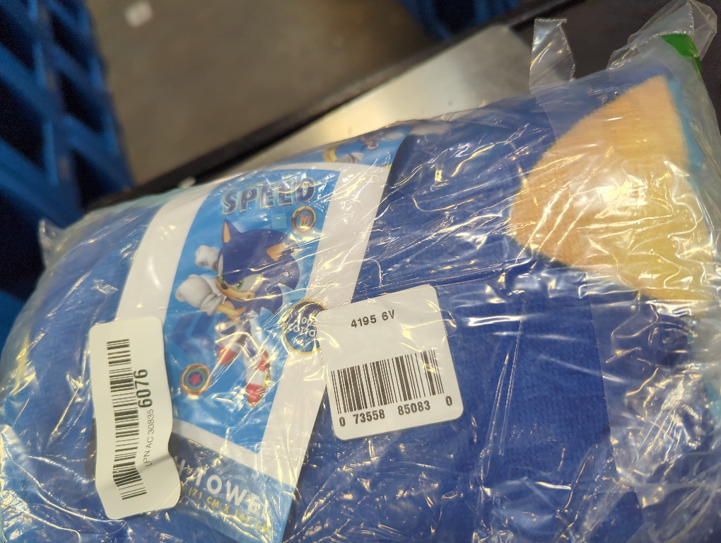 SONIC DESIGN: Young gamers will race to reach for this eye-catching "Ready to Run" patterned towel. Sega's iconic Sonic the Hedgehog, Knuckles, and Tails characters pop with their signature speedy style on this bold blue beach towel