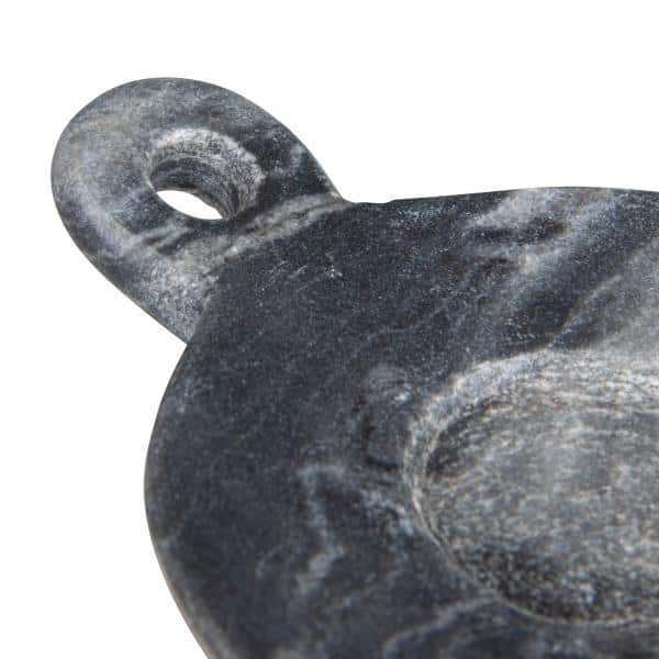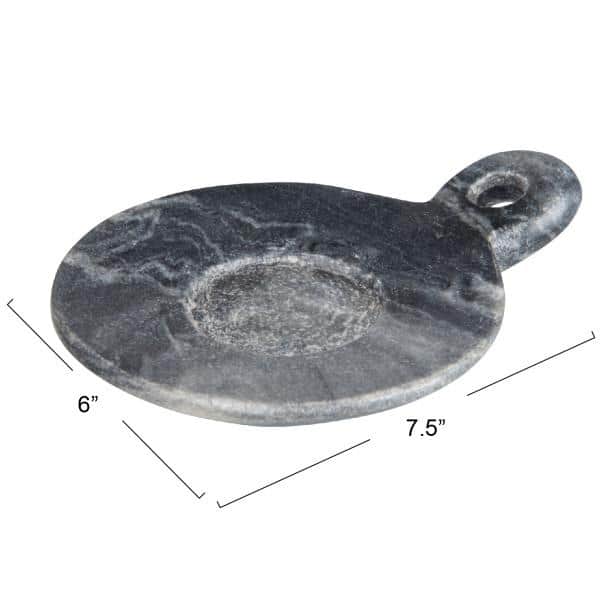 new Open box for inspection Color Grey This hand-carved marble dish is a beautiful and practical piece that can be used in a variety of ways. Its versatile design allows it to seamlessly blend into any living space, adding a touch of sophistication and natural beauty. Crafted from naturally varying marble, each dish has a unique color and grain that makes it a one-of-a-kind masterpiece. Measuring 5 inches L x 4 inches W, it's the perfect size for a range of uses, such as holding your favorite jewelry, a scented candle, or even as a handy spoon rest in the kitchen. With its understated elegance and natural beauty, this dish is sure to become a well-loved favorite in your daily routine. Whether you're using it to hold your trinkets or simply as a decorative accent, this hand-carved marble dish is both practical and visually captivating.. Bath Accessory Type: Soap Dish. Color Family: Gray. Color/Finish: Gray 4 in.. Included: No Additional Items Included. Material: Marble. Mount Type: Freestanding. Pack Size: 1. Returnable: 90-Day. Soap Dish Type: Standard Soap Holder. Product Length (in.): 5 in. Product Width (in.): 4 in. Material: Marble