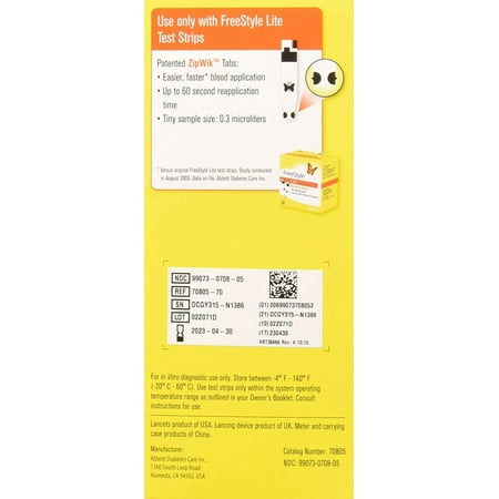 Small and portable design Backlight display and test strip port light No coding, means one less step Small sample size, only 0.3 microliter Fast, 5-second average test time Contents include: FreeStyle Lite Blood Glucose Meter, 1 Lancing Device, 10 Lancets, Carrying Case, English/Spanish Owner's Booklet For use with FreeStyle Lite test strips only, sold separately