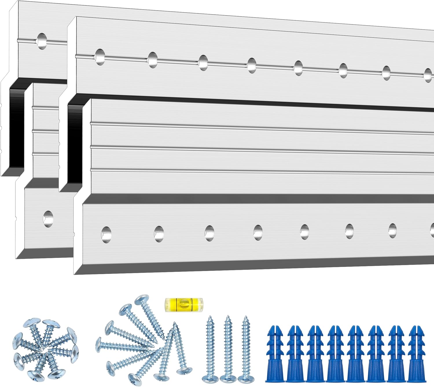 Heavy Duty: Our french cleat picture hanger is made of 3.0 mm thickness aluminum and 1.97 inch wide, for 34 inch long french cleat hangers supports 300 lbs, this picture hanging hardware kit includes 2 pairs of cleats with screws and anchors.