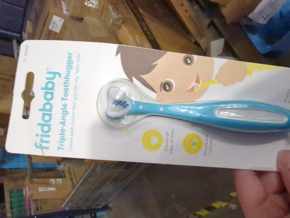 Frida Baby Triple-Angle Toothhugger Training Toddler Toothbrush | Toddler Toothbrush 2 Years and Up, Cleans All Sides at Once | Blue