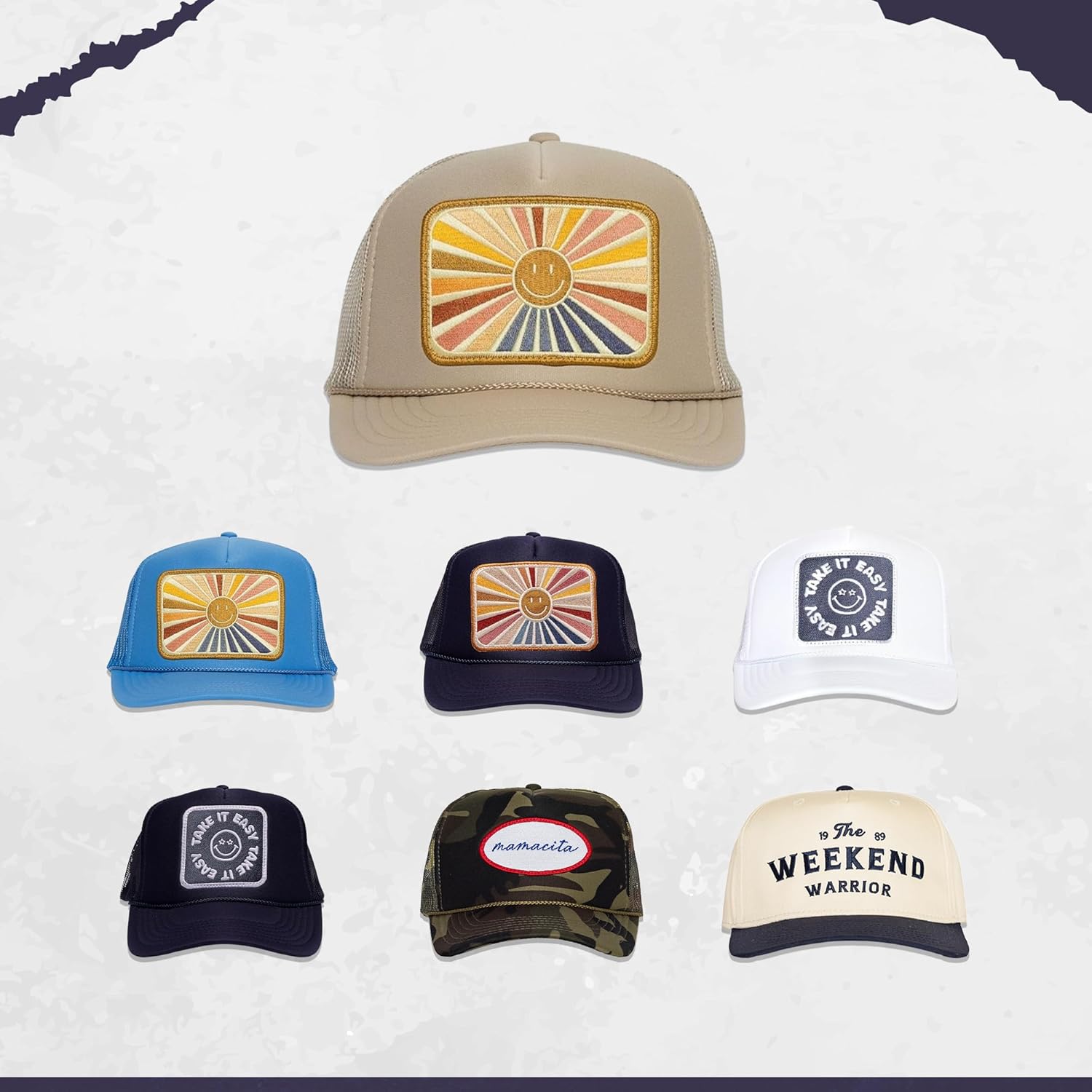 COMFORTABLE BASEBALL HATS: Our hat collection, embroidered hats, happy cap front & trucker hats women plain all you need. Western trucker hat offer comfort with trendy styles, style as cute trucker hats, trendy hats, gym hats,funny beach hat, mens country hats, women trucker hats, mens trucker hats, vintage caps, perfect for occasions-beach, park, pool, gym, work, sporting events, gardening, vacation, camping, hiking, fishing, weekend getaway, traveling.