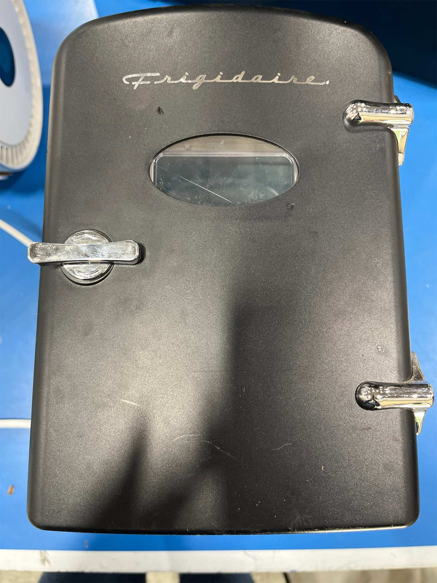 Frigidaire BLACK Retro Mini Portable Personal Fridge - Ideal for Home, Office or Dorm - Features Active Cooling Can Holder on Top - Includes Carrying Handle,(No Charger, no test)