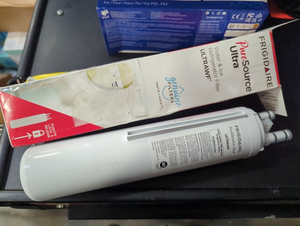 The ULTRAWF water filter is easy to install in Frigidaire refrigerators with the PureSource Ultra filter system. Push to release the old filter and discard. Push the new filter in until it clicks to lock into place. Run water through the new filter for 3 minutes to prime it. Discard the water, which may contain harmless dissolved air and carbon particles.
