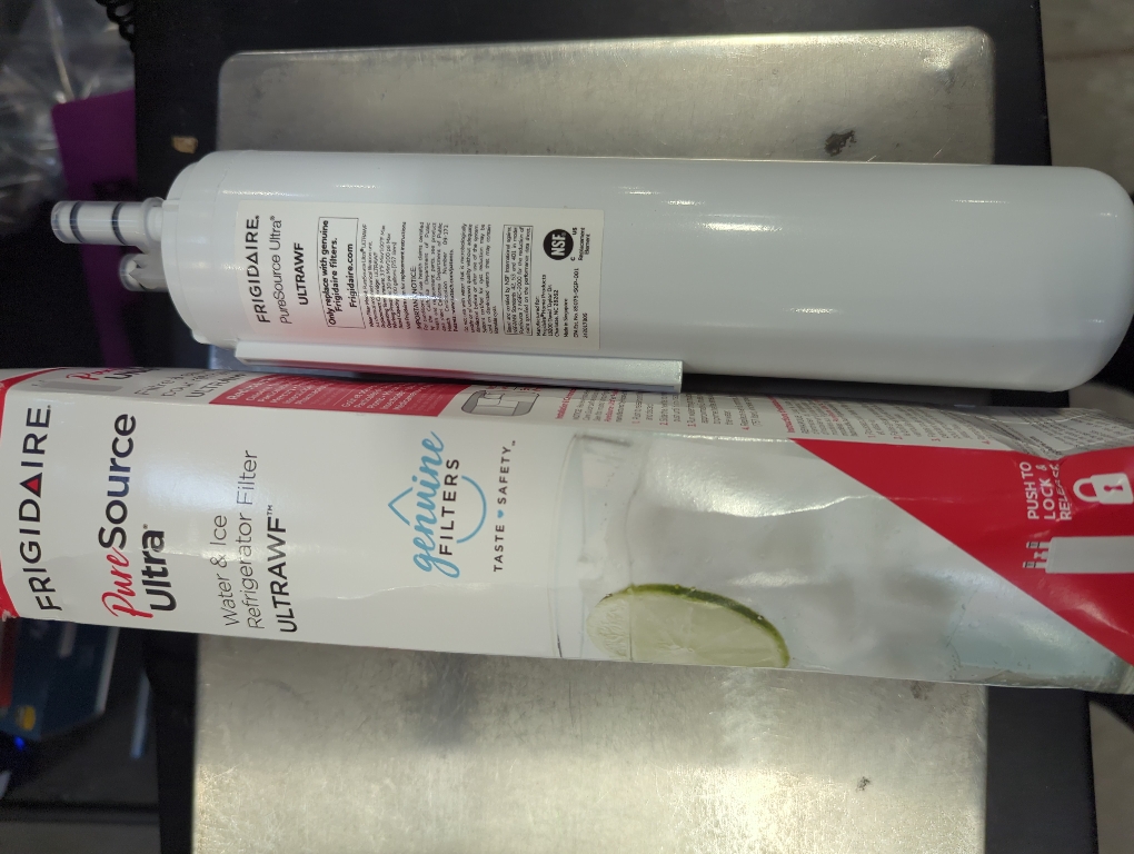 The ULTRAWF water filter is easy to install in Frigidaire refrigerators with the PureSource Ultra filter system. Push to release the old filter and discard. Push the new filter in until it clicks to lock into place. Run water through the new filter for 3 minutes to prime it. Discard the water, which may contain harmless dissolved air and carbon particles.