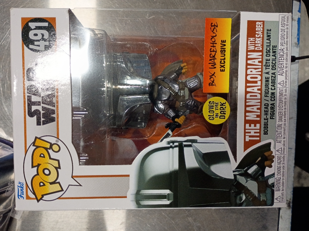 Funko POP! Star Wars Mandalorian With Dark Saber Exclusive Glow Figure #491!