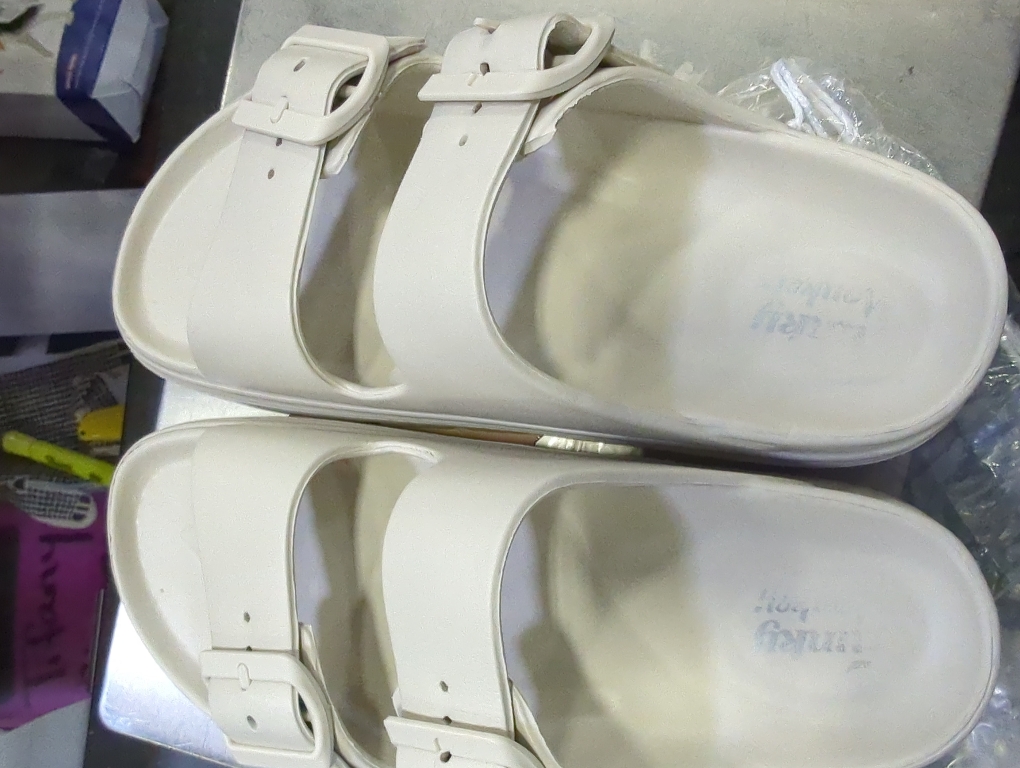 FUNKYMONKEY Women's 6 Cream Comfort Slides Double Buckle Adjustable Plastics Flat Sandals