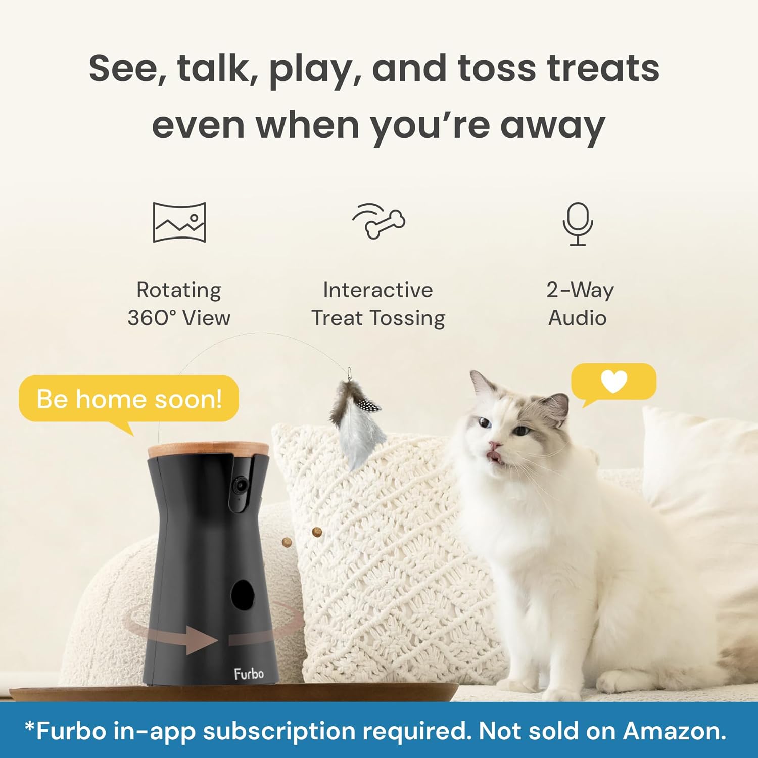 Furbo 360° Cat Camera - Unlock Camera & Smart Features w/Paid Plan: Home Security & Pet Safety Alerts, Rotating Treat Dispenser w/Speaker, Smart Cam w/Phone App (Subscription Required, 3mo Minimum)