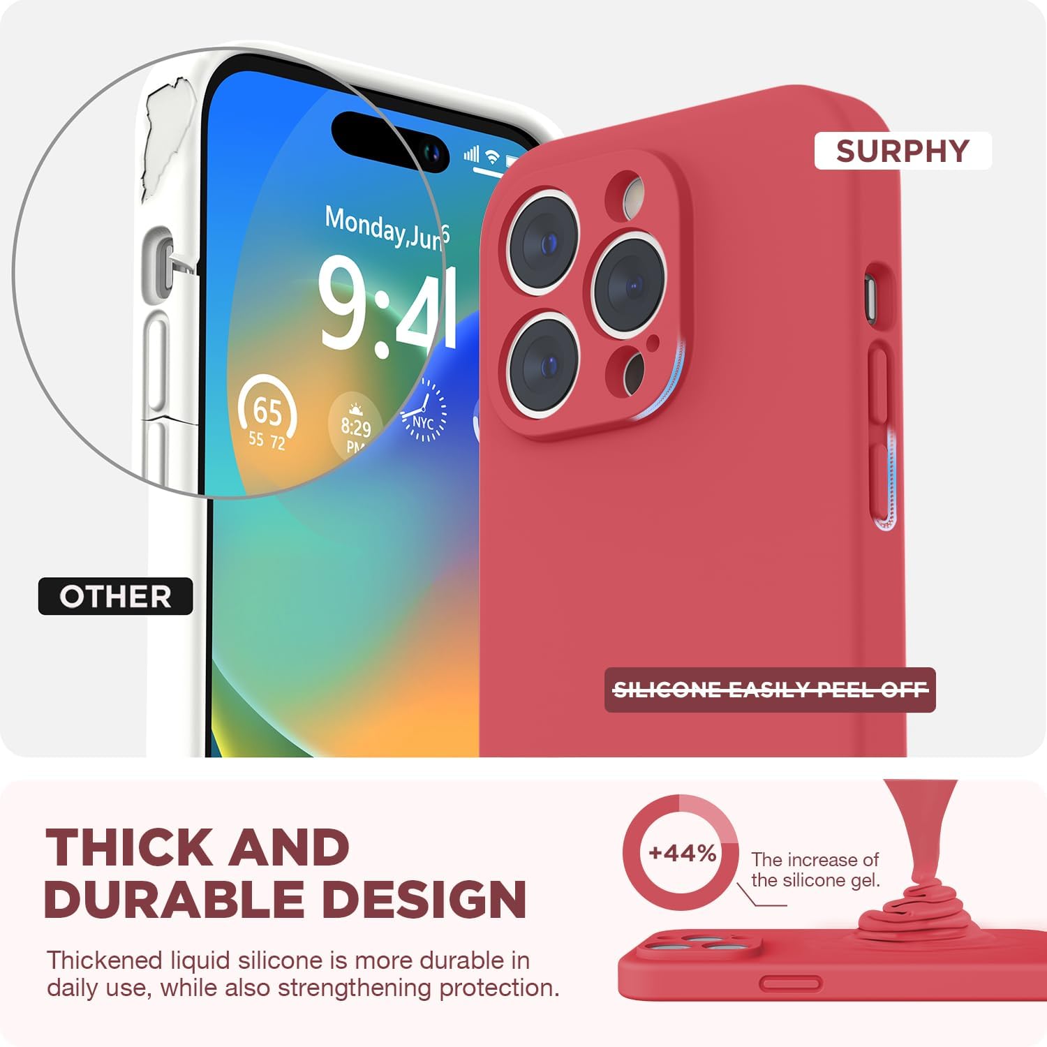 Liquid Silicone Case for iPhone 14 Pro Max: Made of premium liquid silicone, smooth touch, anti-fingerprints, comfortable to grip; easy to clean, dust can be wiped with a damp cloth