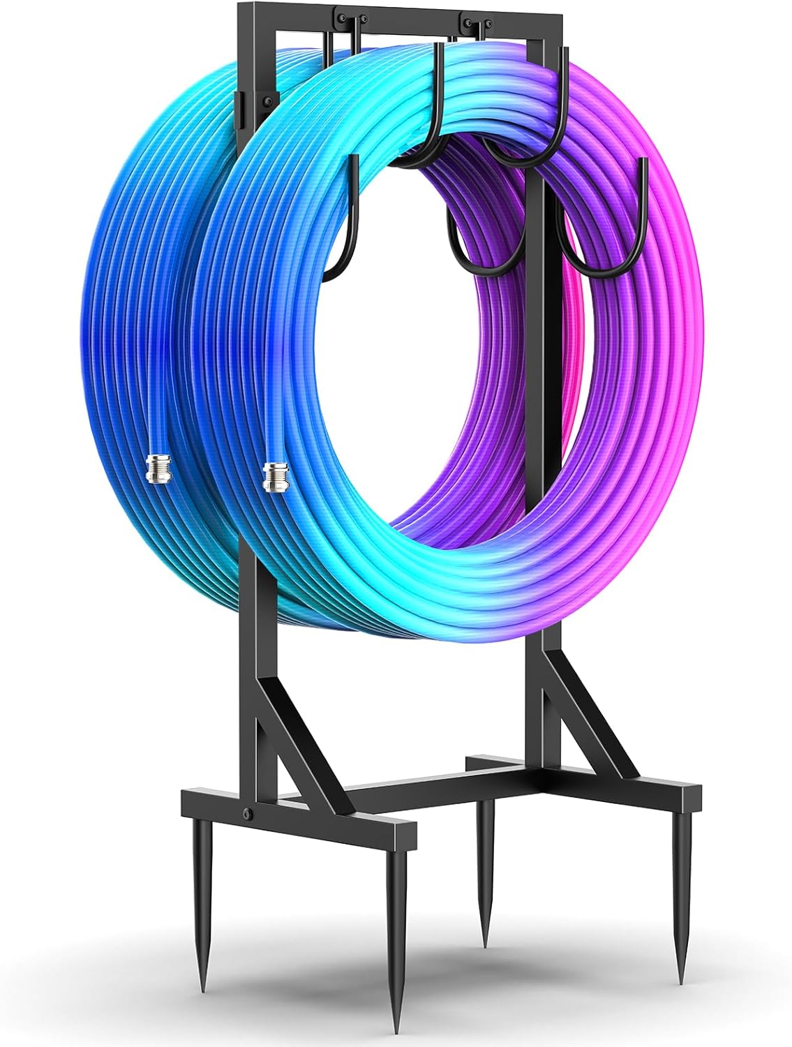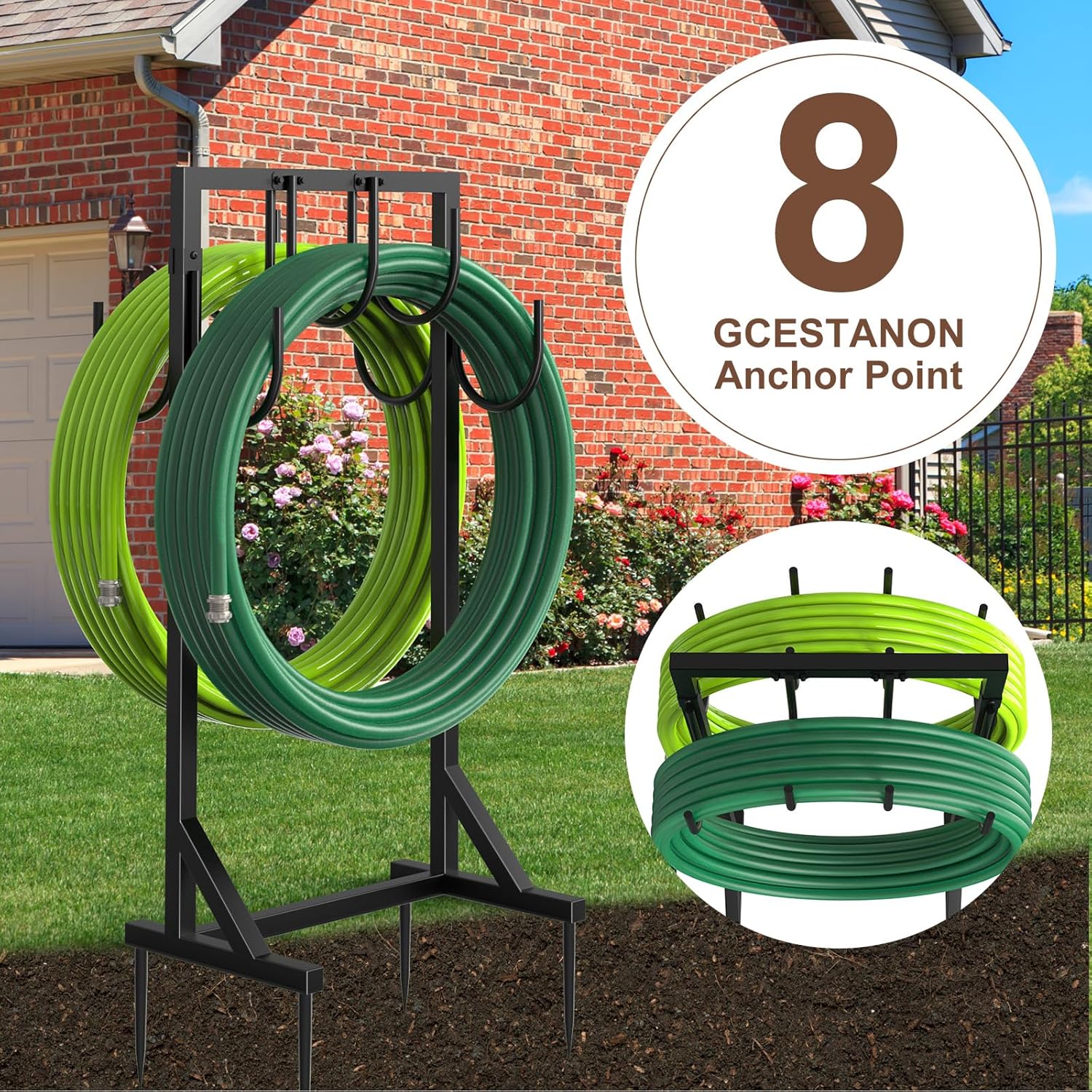 Garden hose holder for outside,Freestanding Hose Stand with 8 Hooks,Water Hose Holder With 4 Reinforcing Spikes,hose holders for outside