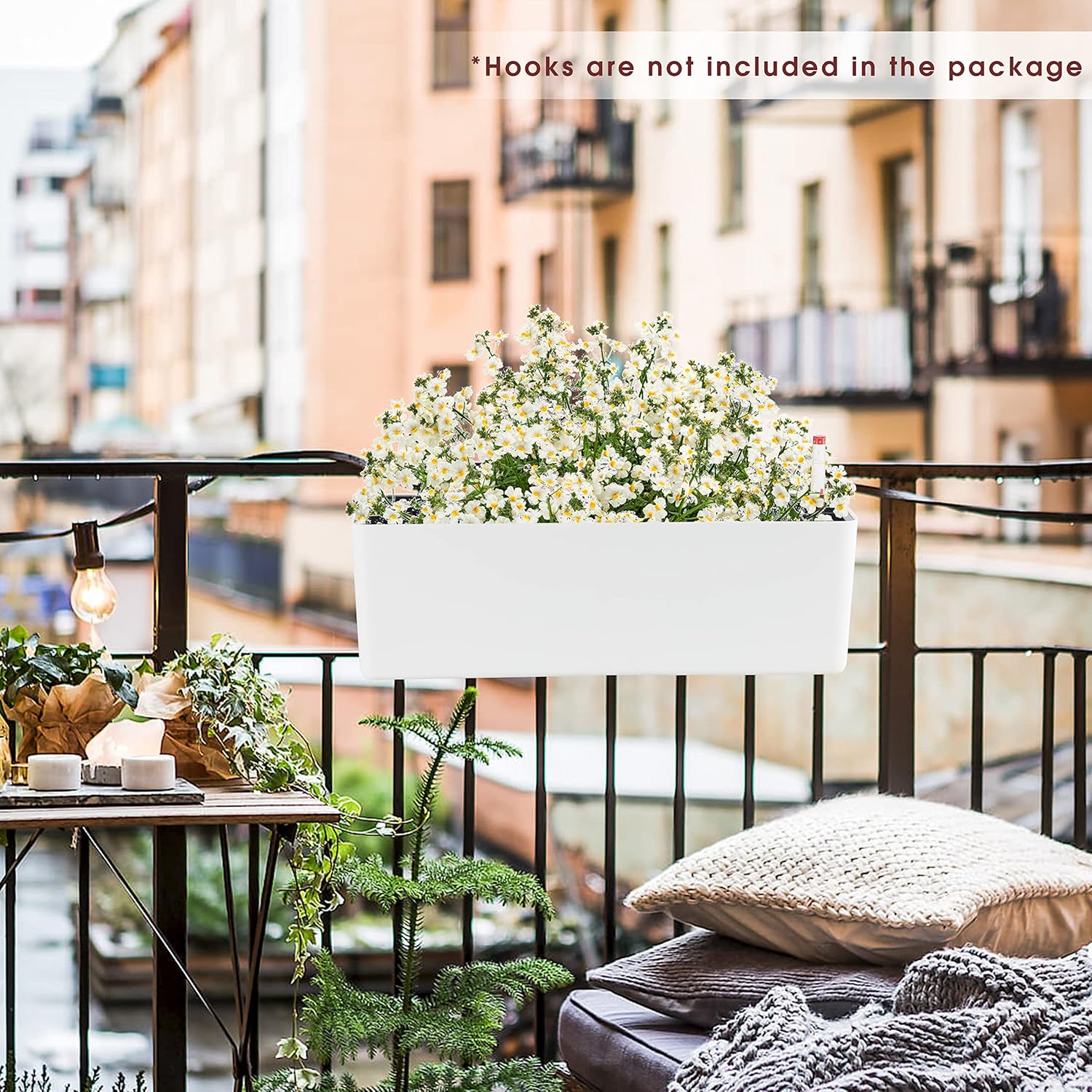 3. GardenBasix Elongated Self Watering Planter Pots 2-Pack Window Box 5.5 x 16 inch Indoor Home Garden Modern Decorative Planter Pot for All House Plants Flowers Herbs (White,2)