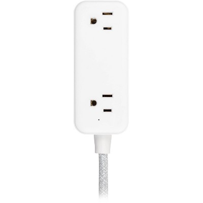 GE 2-Outlet Extension Cord 2 USB-A 1 USB-C 12W 6' Braided White/Gray