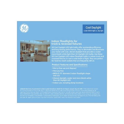Cool Daylight LED 65-Watt Replacement R30 Indoor Floodlight bulbs offer outstanding energy efficiency, long-lasting performance and just-right brightness, all in one package. They’re dimmable and illuminate your home with cool, bluish-white light. These are great for frequently used fixtures—Cool Daylight LED bulbs are rated to last twice as long as Basic Soft White R30 LED bulbs and save dollars 93 in energy costs over the bulb's life versus a 65-Watt BR30 incandescent bulb. Unlike CFL bulbsLED bulbs feature instant full brightness and are free of Mercury. Replace CFL and incandescent light bulbs with Cool Daylight LED R30 (3-3/4-inch diameter) Indoor Floodlight bulbs in indoor track lighting and recessed lighting fixtures, including damp locations.