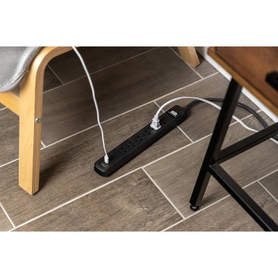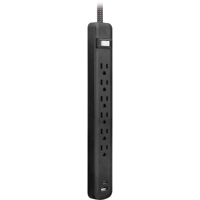 Experience expanded power with the GE 6-Outlet Power Strip with USB Charging. Featuring six grounded outlets, a USB-A port and USB-C port, this extension cord transforms your regular outlet into a versatile, efficient powering station. The dynamic 6ft. Range of this power strip makes it a must-have when you need power and protection from a distance. The hard usage service cord is housed in a durable PVC insulation and braided cord. The integrated circuit breaker with reset switch is specifically designed to cut off the flow of electricity to your unit should it surpass the maximum amperage threshold, assuring that your unit is safe from overheating and igniting. The included keyhole slots on this extension cord make it a breeze to mount to a wall, desk, workbench or counter. No more fumbling with your power strip create a permanent plug-in for your various electronics or remove your unit for use during the holidays or special occasions to power your lighting displays or decorations. Get the most from your outlet with the GE 6-Outlet Power Strip with USB Charging. Highlights: Expanded Power Six grounded outlets, one USB-A port and one USB-C port (15W shared) offer a variety of powering options for phones, laptops, tablets, household appliances, lighting and more Versatile Cord 6ft. Power cord comprised of heavy-duty cable housed in a durable braided cord is strong enough to last a lifetime and pliable enough to fully extend Protection Integrated circuit breaker cuts power to your extension cord should it experience overvoltage or overheating Trusted Brand GE is the #1 Brand in surge protection and extension cords Specifications: Dimensions (Overall): 3.6 Inches (L), 13 Inches (H) x 1.7 Inches (W) Weight: .8 Pounds Cable/Cord Length: 6 Feet Peak power: 1875 Watts Wire Gauge: 14 AWG Maximum Amperage: 3.6 Amps Number of outlets: 6 Number of conductors: 3
