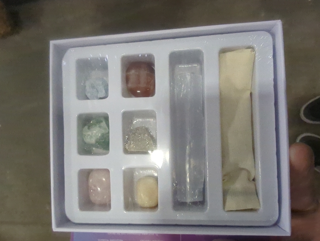 Includes: |6 personal-sized stones: |Rose quartz (radiates calmness self-love) |Fluorite (provides clarity emotional well-being) |Blue calcite (recalls insights activates all chakras) |Yellow jade (aids in dream interpretation harmony) |Sandstone (brings forth creativity eases mental distractions) |Carnelian (awakens talents feelings of connectedness) |1 natural wand: |Selenite (increases awareness flexibility) |All in an eye-catching gold foil–accented box with detailed mudra explanations |Each crystal is one of a kind |Easy-recycle packaging| Style Features: Crystal Gemstone Mudras| Dimensions: 5.25"L x 4.5"W x 1.25"H| Materials: 100% Cotton muslin drawstring bag| Metals/Stone: Rose quartz fluorite blue calcite yellow jade sandstone carnelian selenite| Weight: 0.25 lb| Care: Keep box out of water or damp conditions To clean: use a damp cloth and gently wipe each stone| Country of Origin: Imported