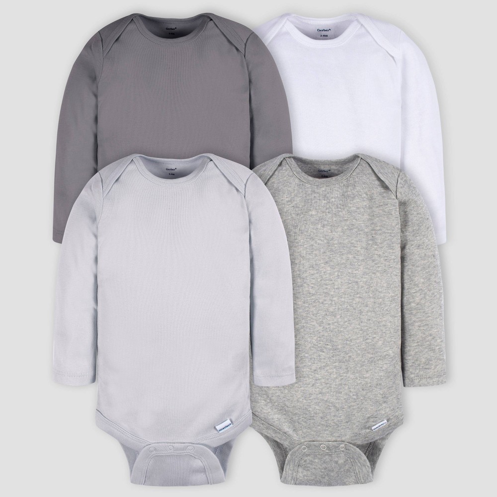 Gerber Baby 4pk Long Sleeve Onesies - Gray 24M