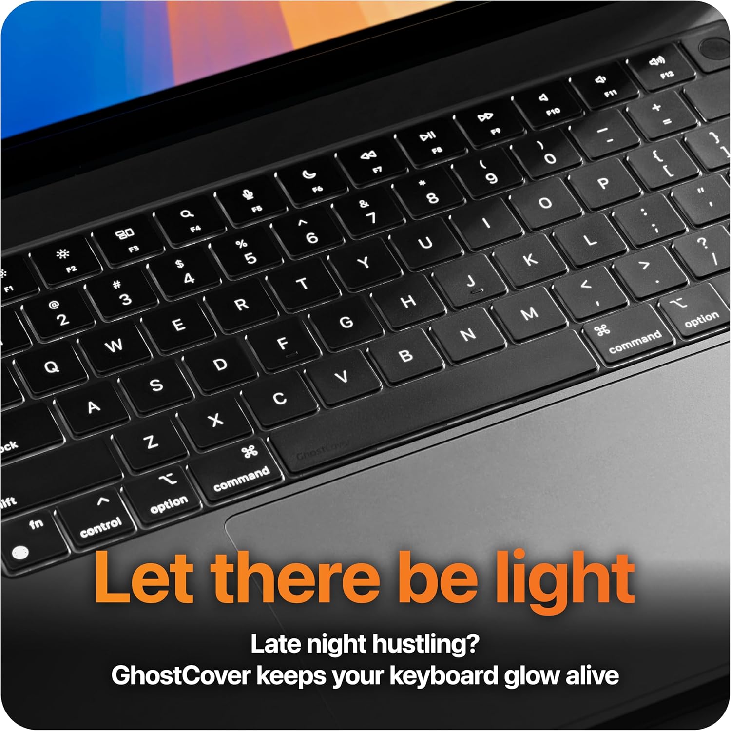 GhostCover Original Premium Ultra Thin Keyboard Cover Protector, Compatible with 2025 2024 2023 2022 2021 M4/M3/M2/M1 Pro/Max MacBook Pro 14/16, M4/M3/M2 MacBook Air 13/15, US ANSI Layout, Clear