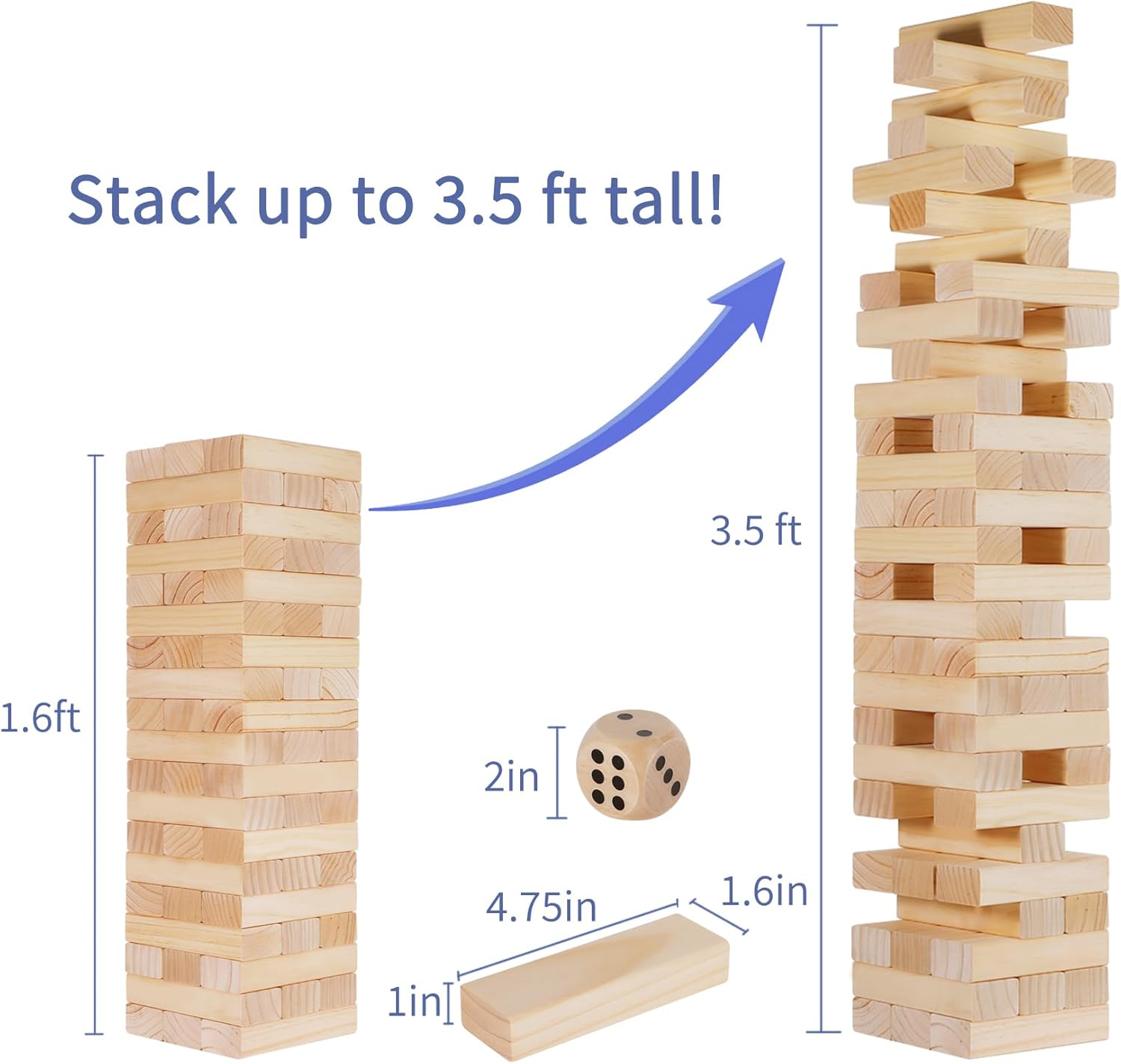 Classic Stacking Games: The SpeedArmis Tumble Tower is the first choice for indoor or outdoor educational games. Complete packing list includes 56 pcs pine wood blocks, a dice and a carry bag. Stacking the Tumble blocks from original 1.5 FT to over taller tower is challenging and exciting process