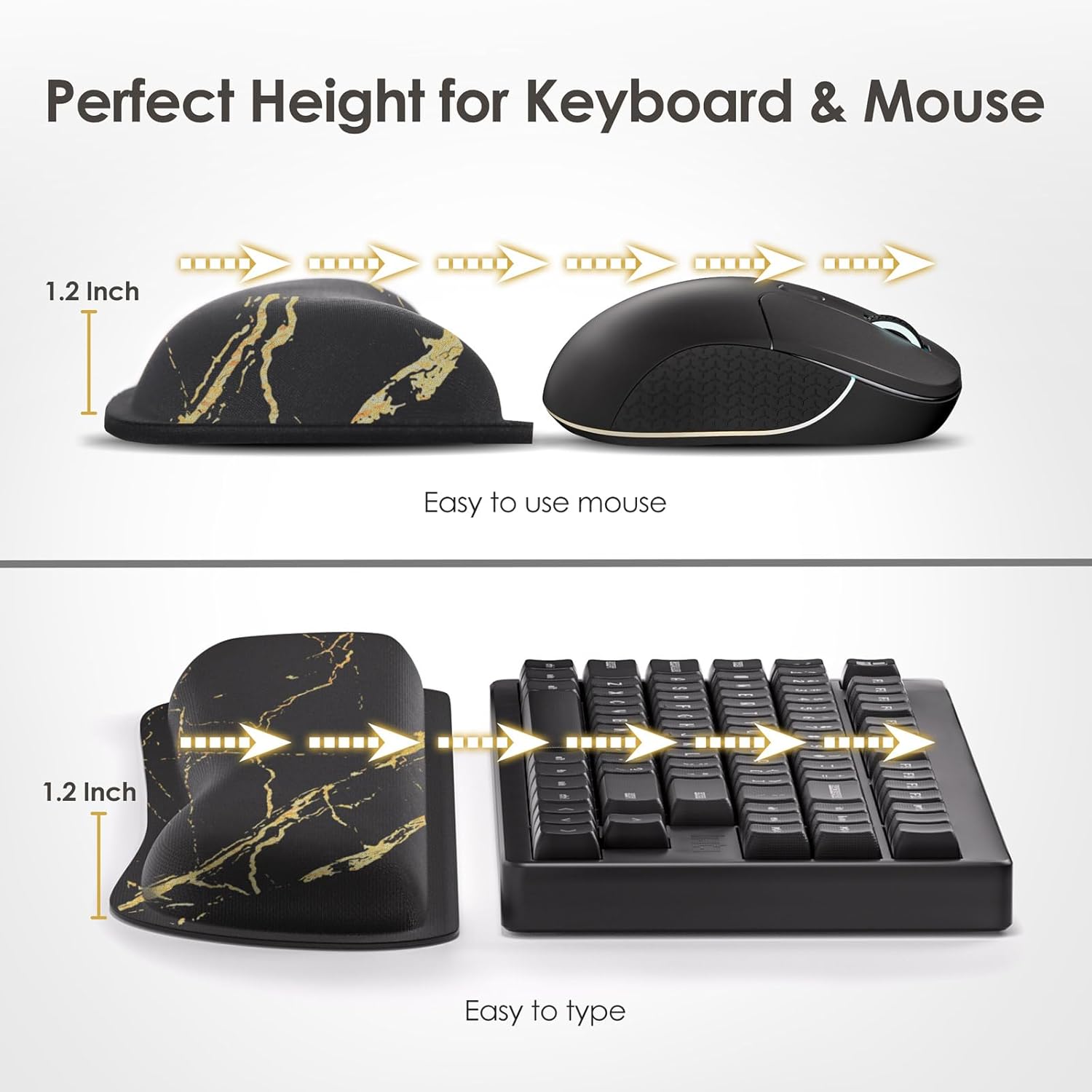 Gimars Upgrade Enlarge Silky Gel Memory Foam Wrist Rest for Computer Keyboard, Mouse, 3 PCS, Ergonomic Keyboard Wrist Rest for Typing Pain Relief, Mousepad Rests Wrist Support for Office Gaming Marble