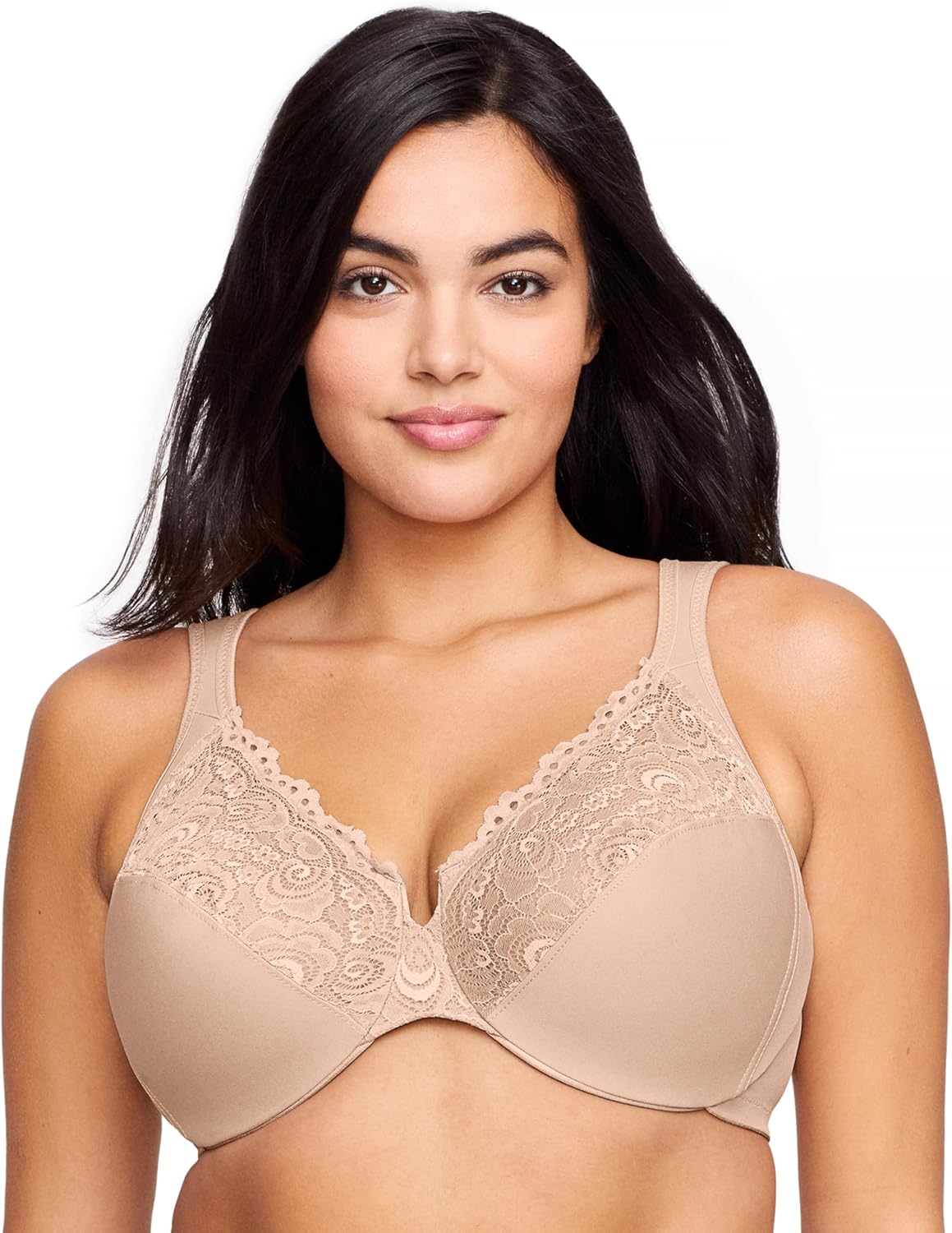 Glamorise Women's Plus Size Low Cut Wonderwire Lace Bra Underwire #1240