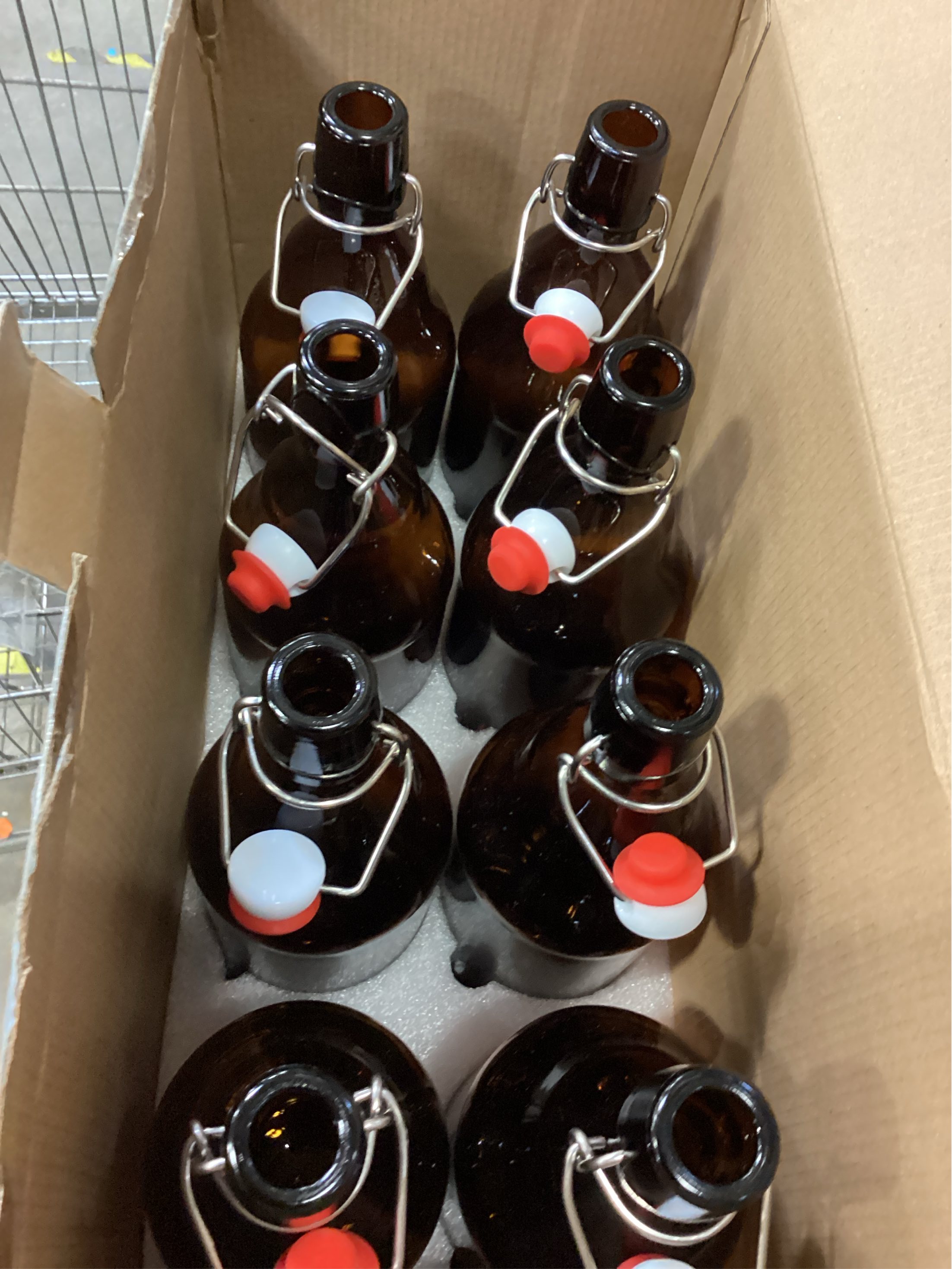 Glass Bottles, Refillable Brown Glass Storage Bottle with Swing Top Lids, Amber Iron Clasp Bottles with Stickers&Pen for Home Brewing, Drinks, Sauces, Industrial products, etc (1000ML, 8 PCS)