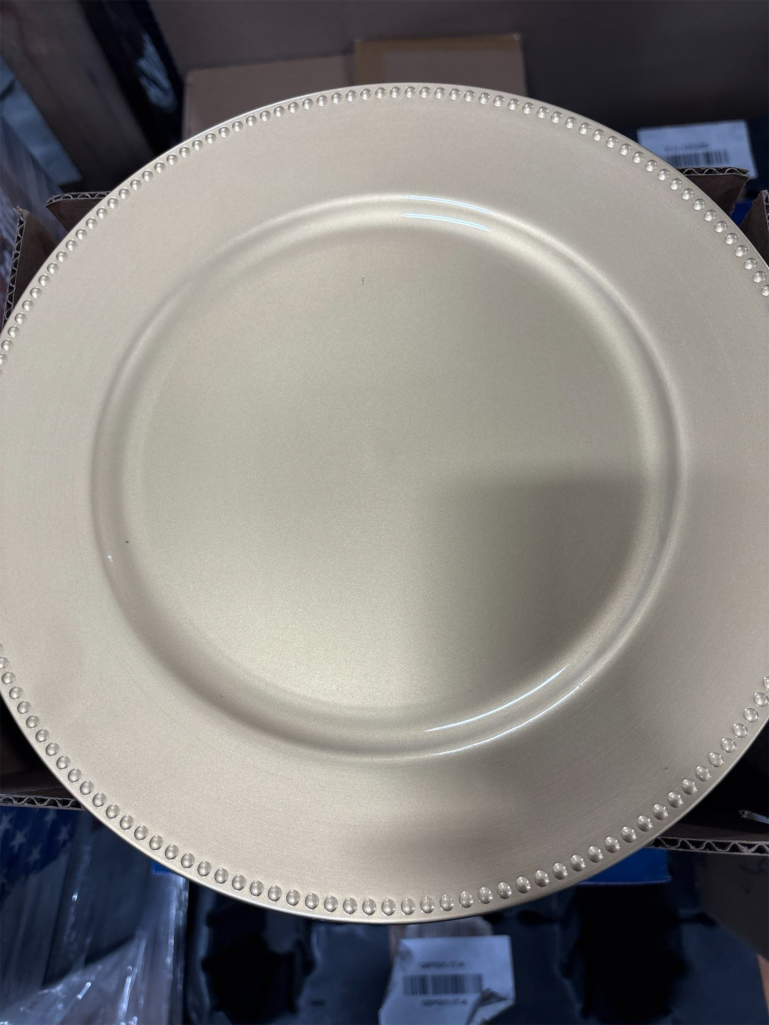 EXCELLENT QUALITY: These 13-inch diameter gold chargers are made of high-quality plastic and hand-selected, which is a great choice on your dining table. These gold beaded dinner chargers are low-key and warm, with a classic look, with a beaded texture on the edges, which adds visual interest to each table.