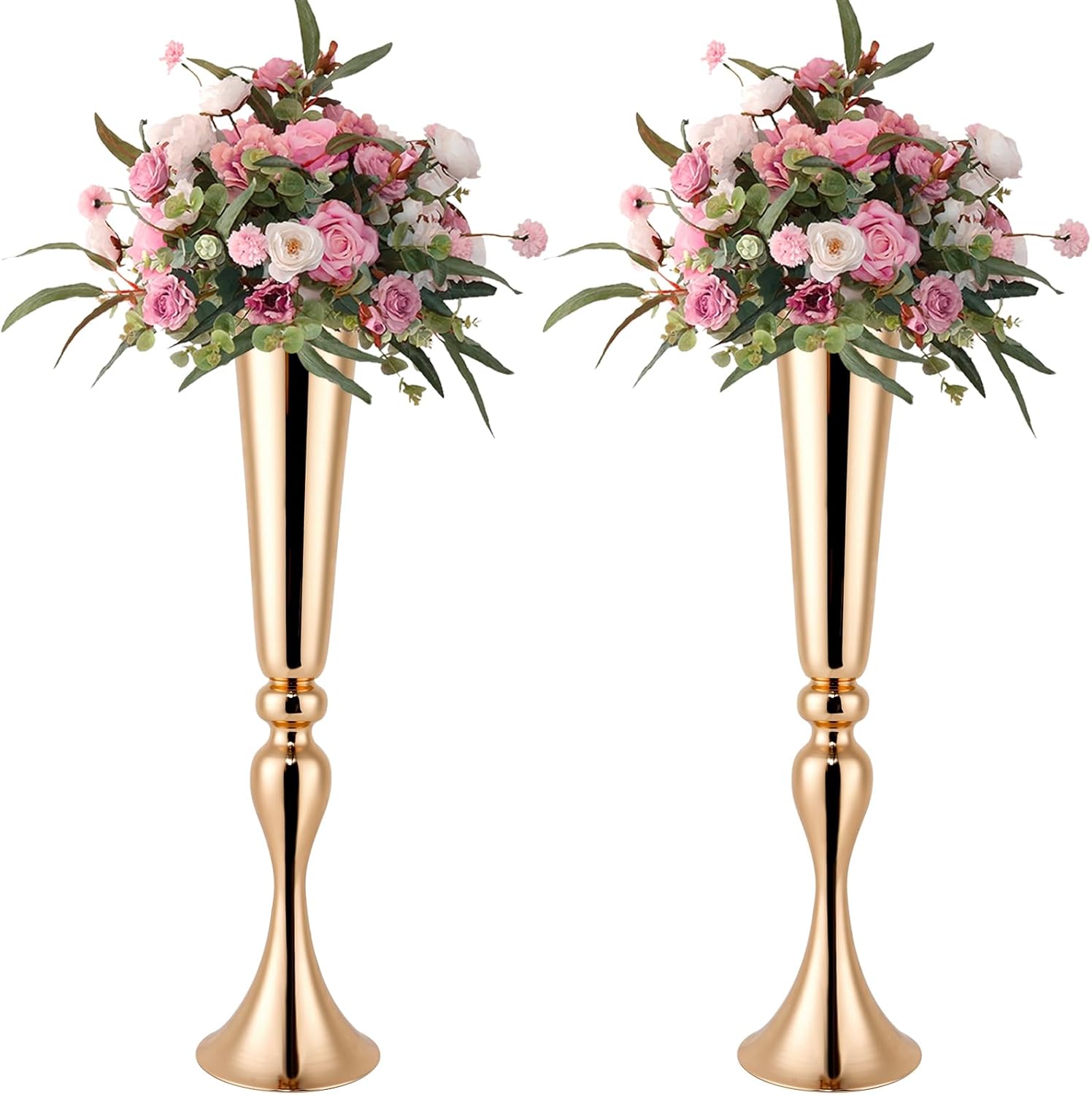 Gold Vase for Wedding Centerpiece, 2Pcs Metal Trumpet Vase 22" Tall Flower Stand for Wedding Table Centerpiece Decoration Floral Arrangement for Reception Bridal Party Decor