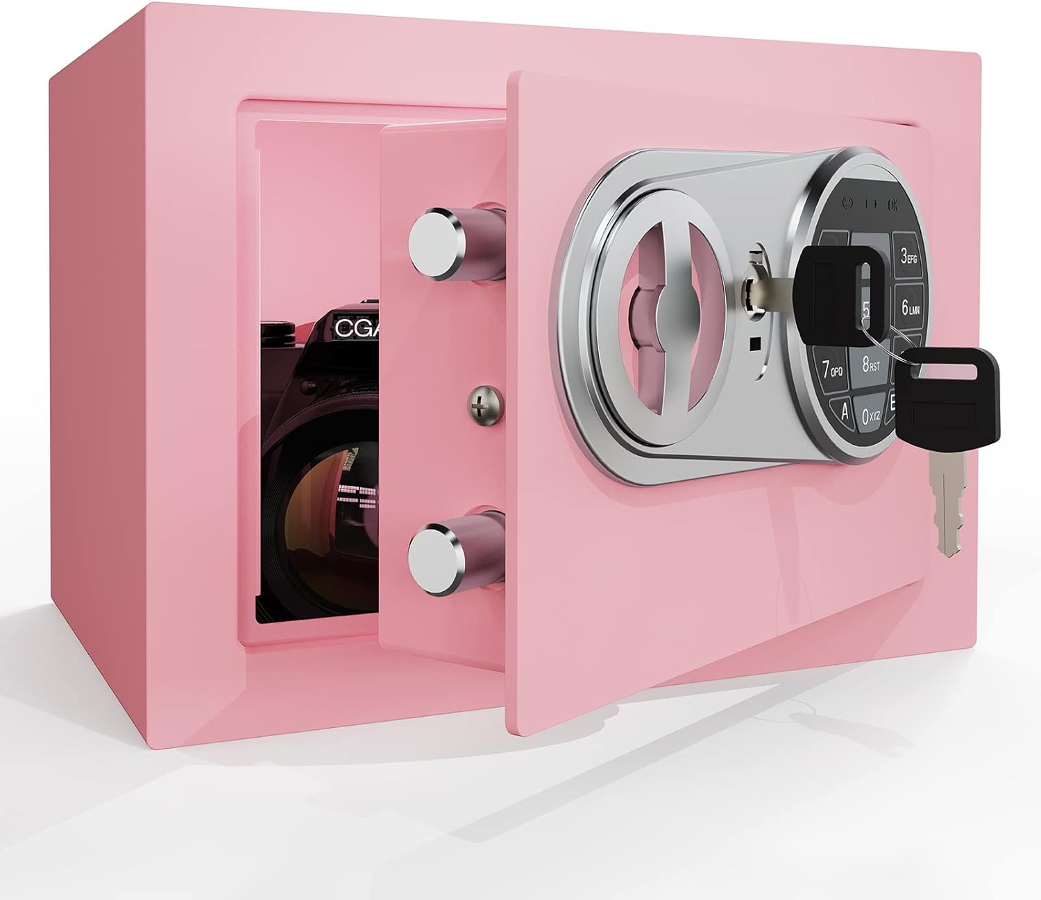 Goldenkey Small Safe Box for Money, Digital Home Safe Box with Keys&Code for Cash and Coin, Mini Safes for Kids, Personal Items for Hotel, 6.69"D x 9.05"W x 6.69"H, 0.236 Cu.Ft.