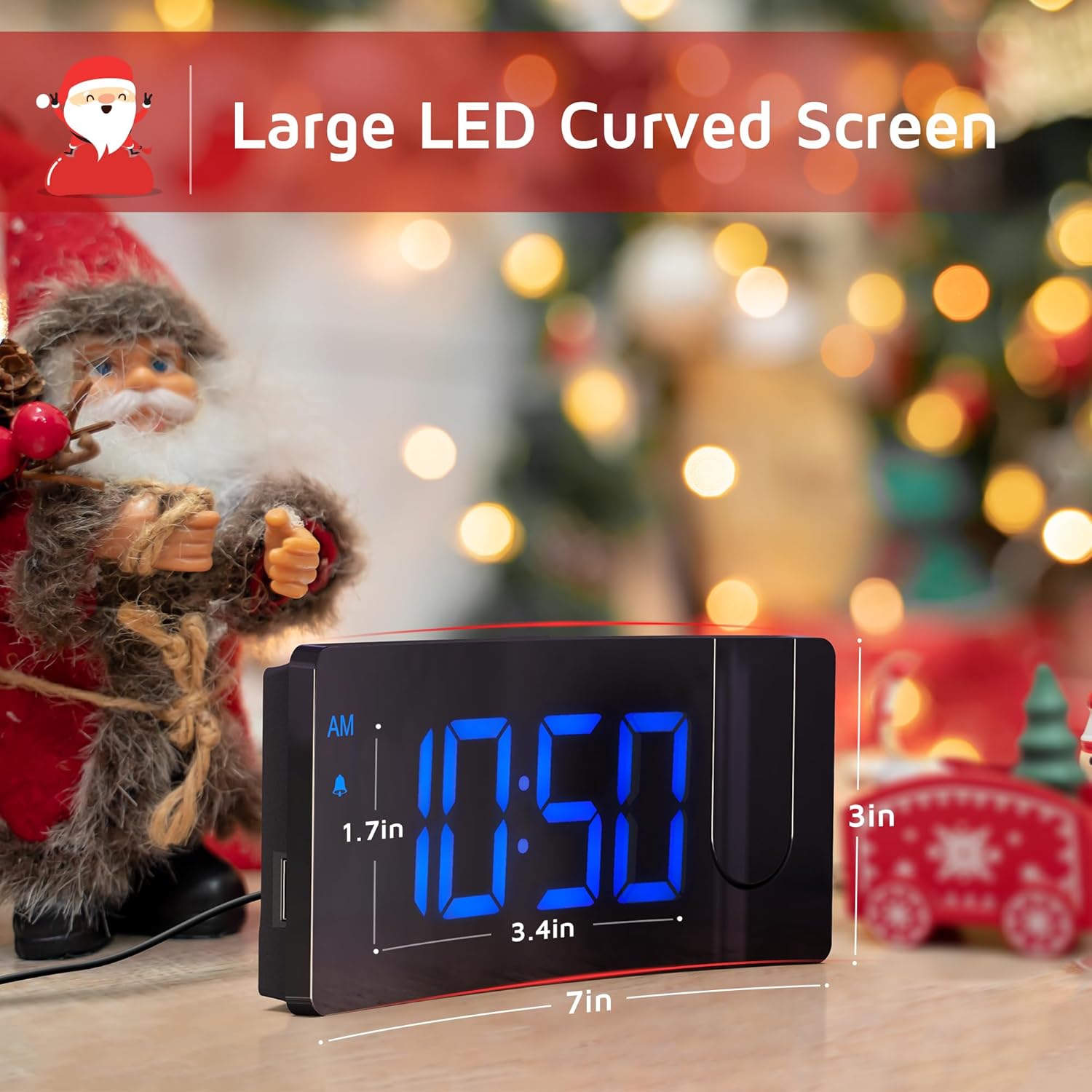 LARGE LED DISPLAY & 3 BRIGHTNESS LEVELS -- The curved screen with 3.4*1.7inch large digits is easy to read in the dark, even when you are not quite awake or without your glasses. With 3 adjustable levels, you can dial down it to a level that is readable in the daytime but unobtrusive at night. It allows you to separately adjust the brightness of the face display and the projection display.