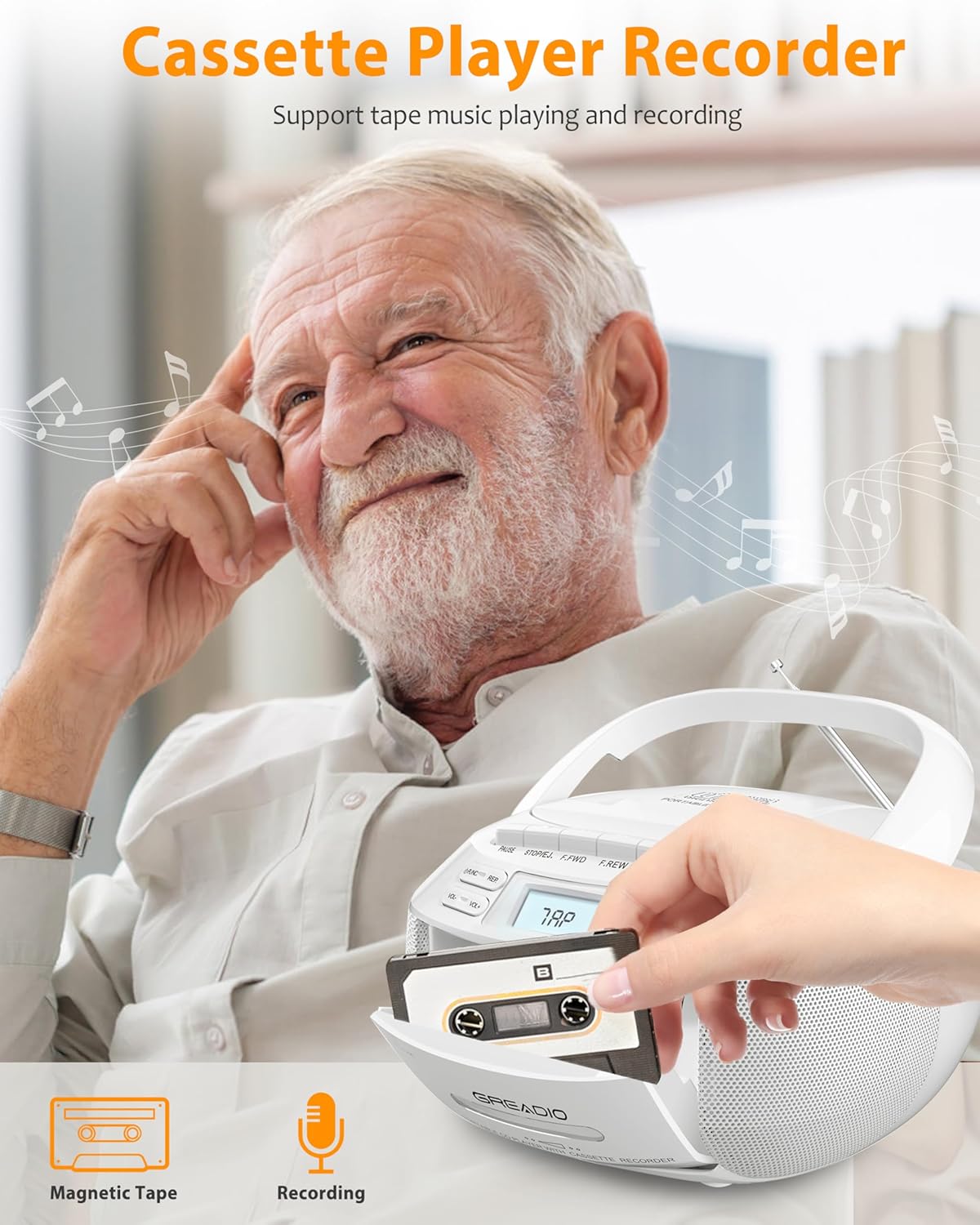 Greadio CD Player Boombox Cassette Player Combo with Bluetooth,AM/FM Radio,Stereo Sound with Remote Control,AUX/USB Drive,Tape Recording,AC/DC Powered,Headphone Jack,LCD Display for Home,Kids,Gift