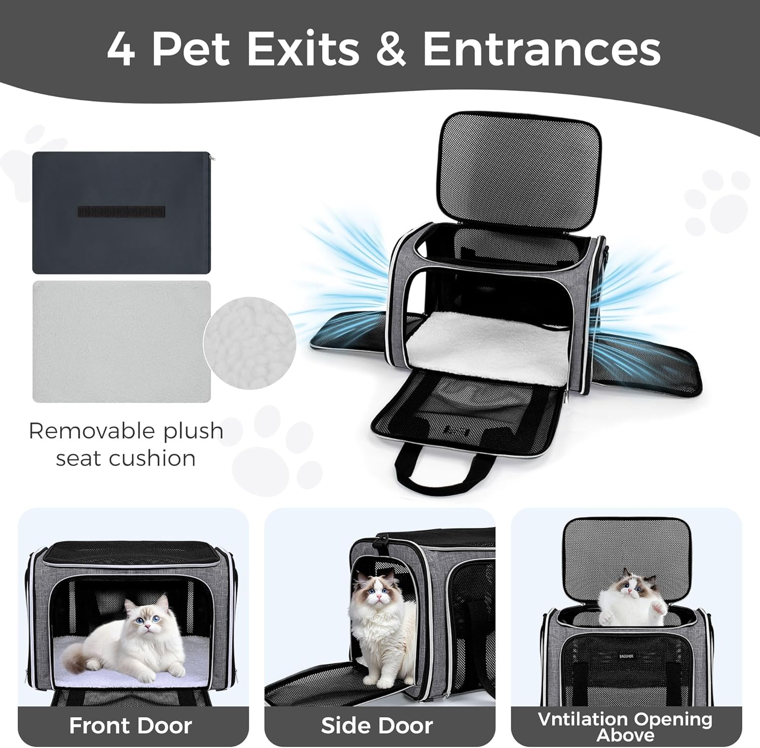 Grey 17x11x12 BAGLHER Pet Travel Carrier, Cat Carriers Dog Carrier for Small Medium Cats Dogs Puppies, Airline Approved Small Dog Carrier Soft Sided, Collapsible Puppy Carrier. Grey