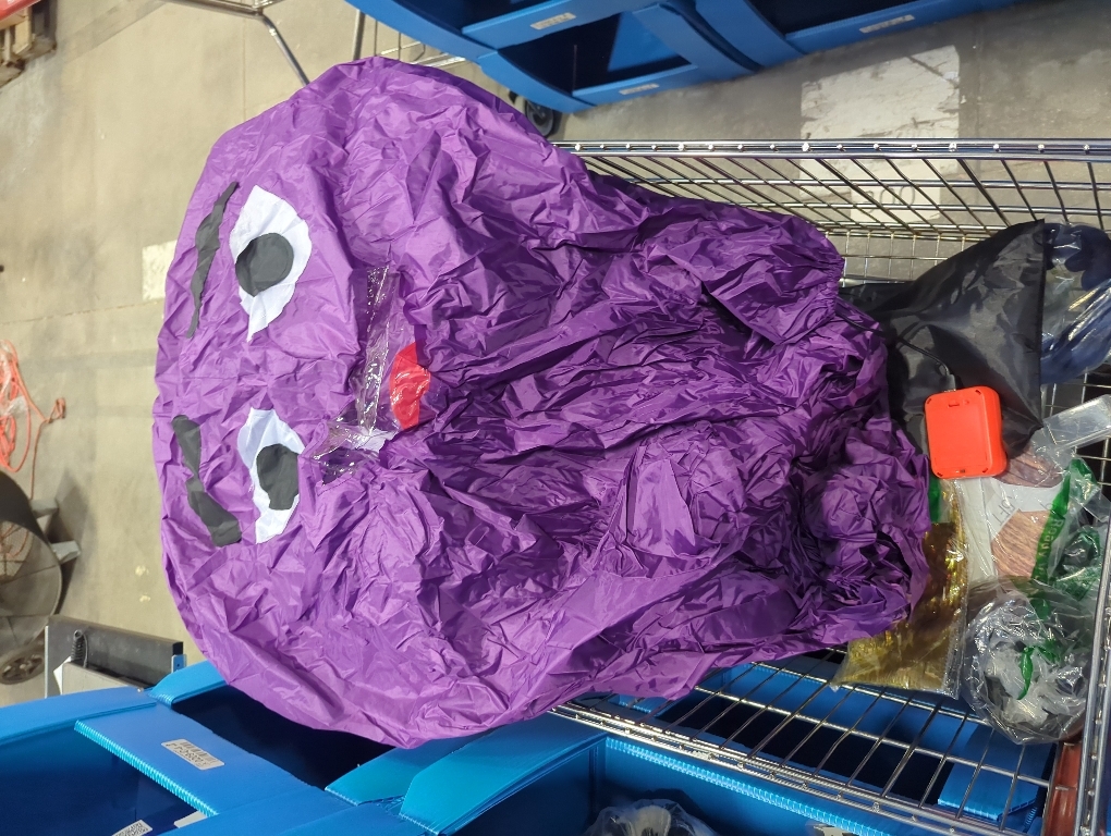 Material: Our purple Grimace inflatable costume is crafted from high-quality polyester material, making it waterproof, dustproof, soft, and breathable. It is designed for easy wear and removal, allowing for effortless movement whether walking, jumping, sitting, or running. You can freely enjoy trick-or-treating in this costume.