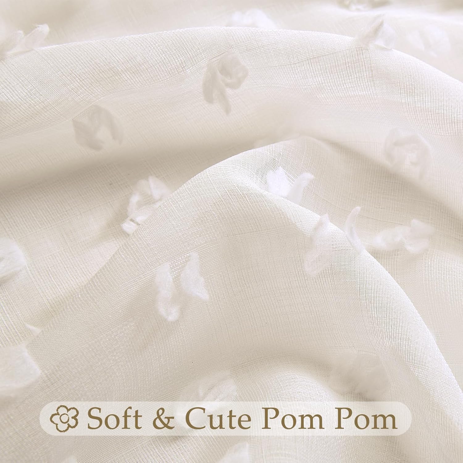 Light Filtering & Privcy: Pompom tufts beige sheer dotted curtain draperies don't completely block the sunlight but filter it nicely. Add a touch of fashion to any room, offer a lightweight clean look, airy esthetic that softens the ambiance of your room.