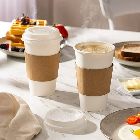 Complete set of 50 disposable coffee cups Includes white cups, white lids, and coffee sleeves Made from food-safe, BPA-free materials A must-have in every home or cafe Will keep your drinks hot and flavorful