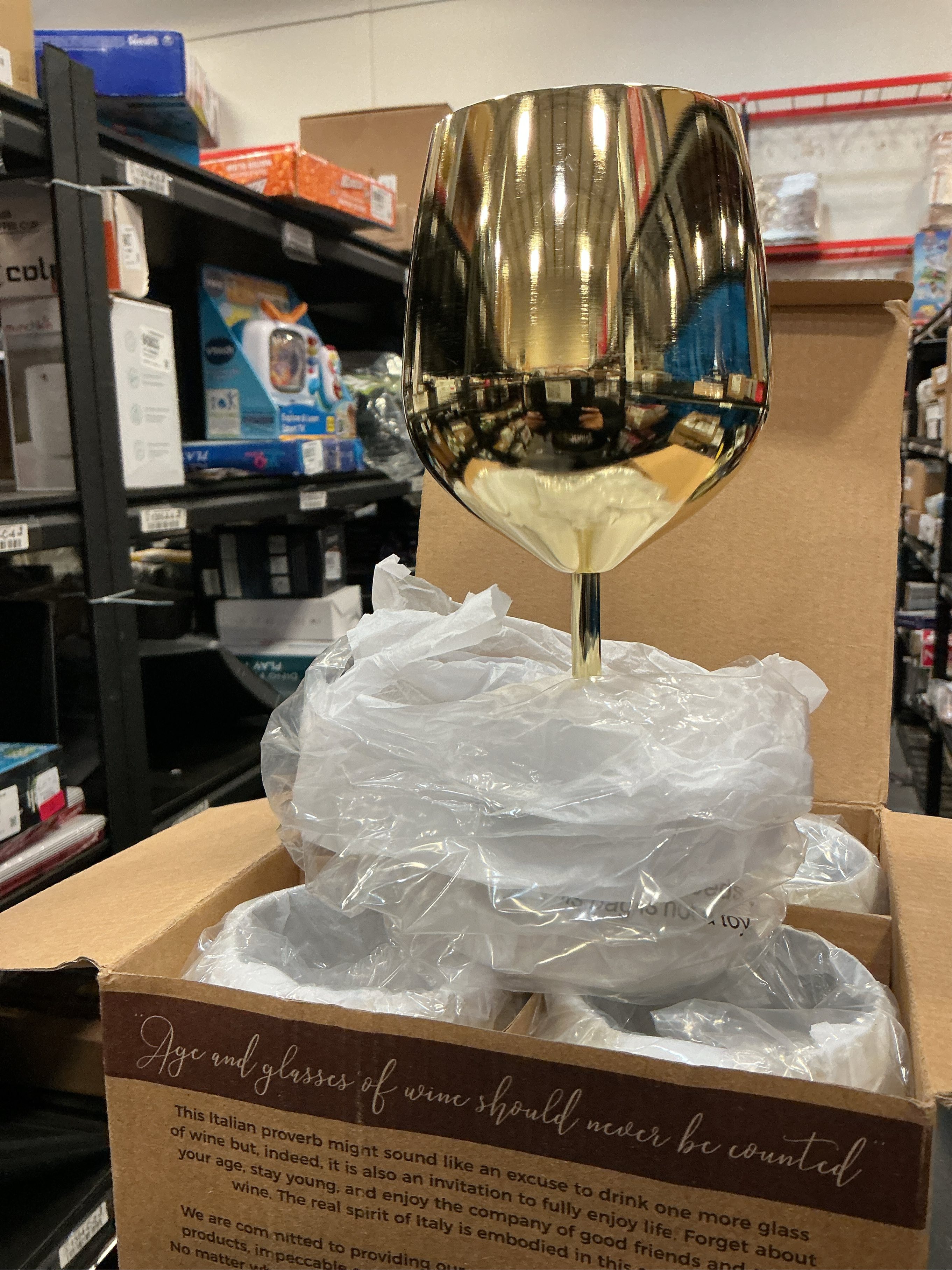 Gusto Nostro Stainless Steel Wine Glass - 18 oz Unbreakable Gold Wine Glasses for Travel, Camping and Pool - Fancy, Unique and Cute Portable Metal Wine Glass for Outdoor Events, Picnics (Set of 4)