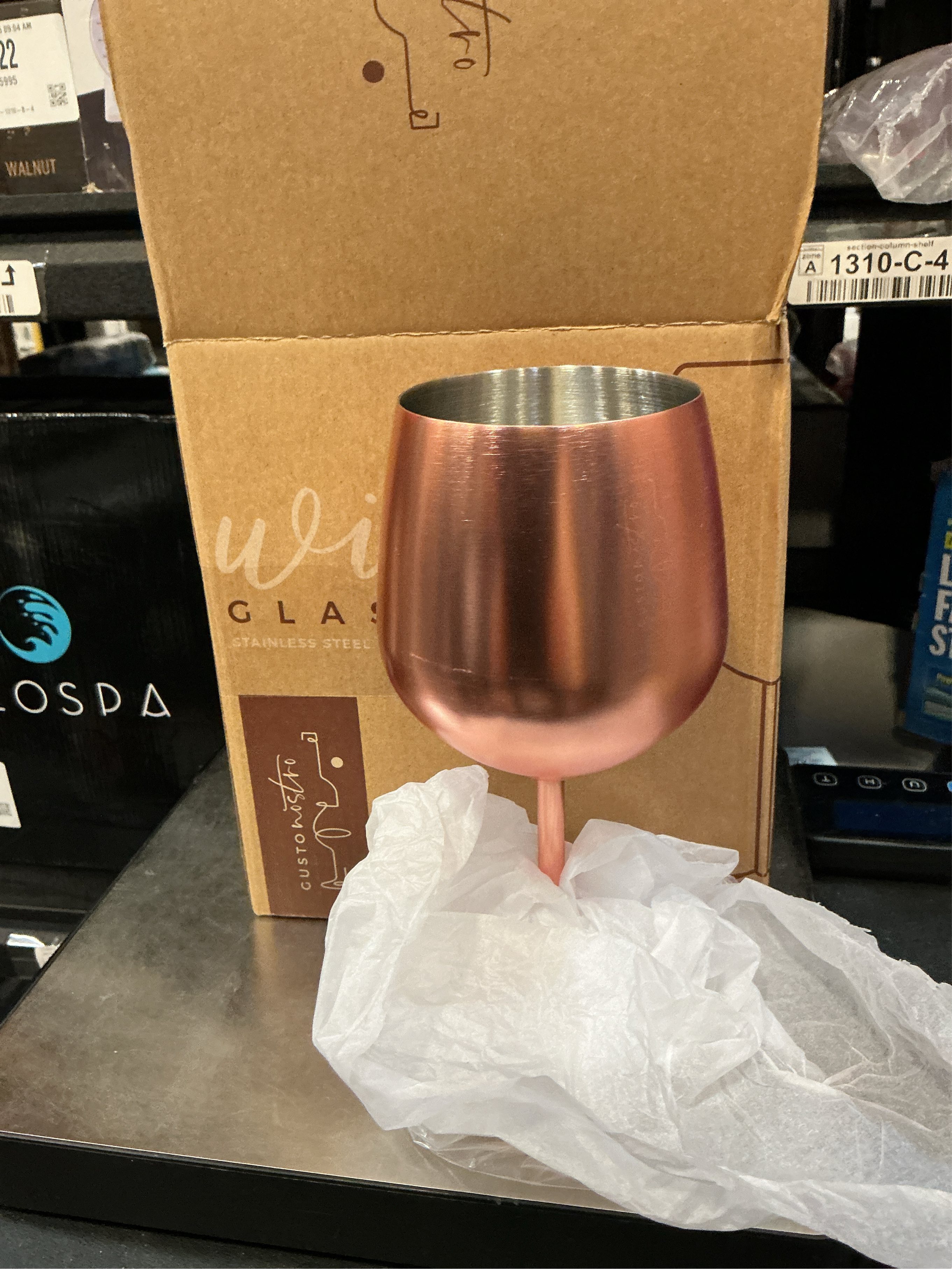 Gusto Nostro Stainless Steel Wine Glass - 18 oz - Unbreakable Rose Gold Wine Glasses for Travel, Camping and Pool - Fancy, Unique and Cool Portable Metal Wine Glass for Outdoor, Picnics (Set of 4)