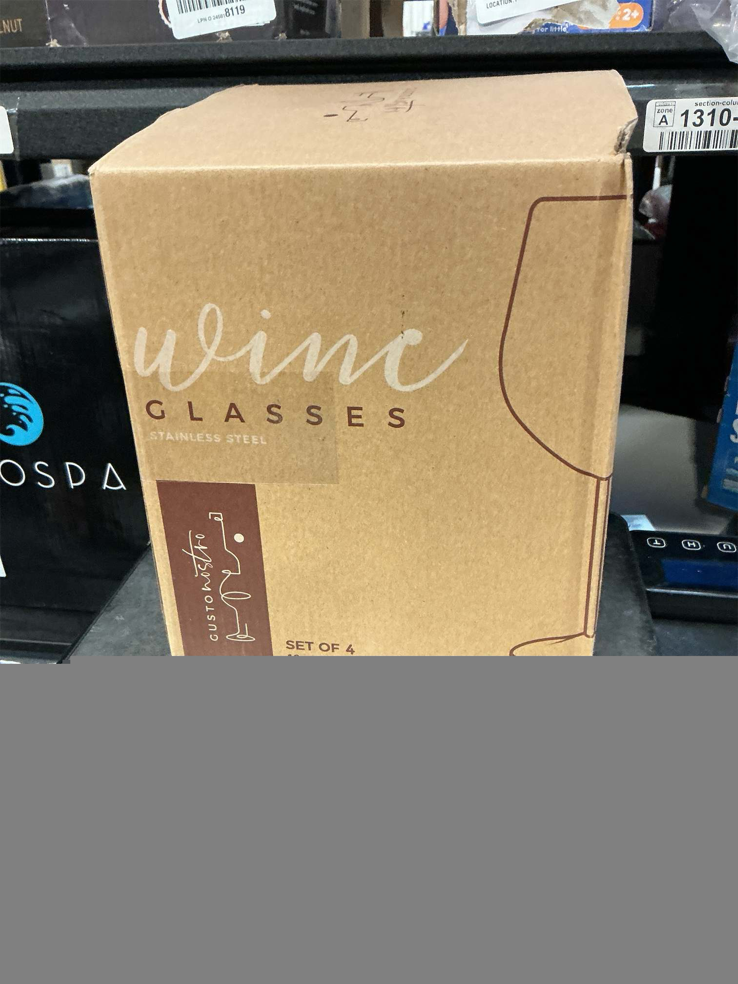 TASTEFULLY PACKAGED and ready to bestow on friends, family and colleagues, Gusto Nostro Stainless Steel Stemmed Wine Glasses make impressive housewarming, wedding or Christmas gifts for wine lovers.