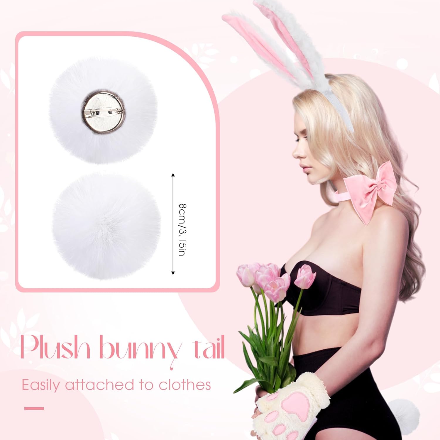Fluffy Rabbit Gloves and Tail: the gloves simulate the palms of a bunny, featuring a cute, soft pink design; The fingerless style provides ease for movement, touch, and grasping items, with a string connecting the two gloves to prevent loss; The rabbit tail measures 3.15 inches in diameter, its large, fluffy design drawing immediate attention to your adorable accessory; It's easily attachable to clothing and stays in place