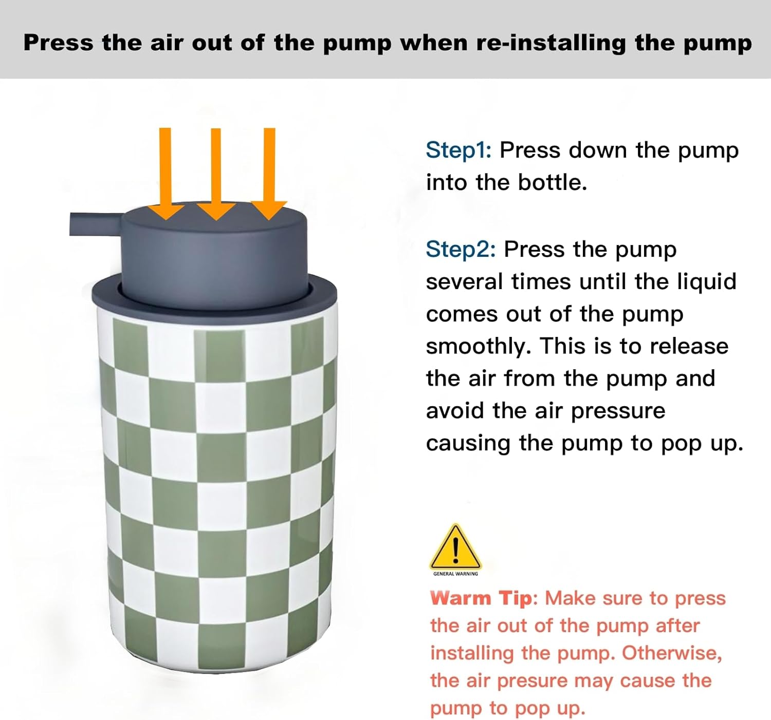 Quality Pump Head- The pump of this bathroom soap despenser is made by ABS and finished with matte rubber paint, and it will provide a better hand feel