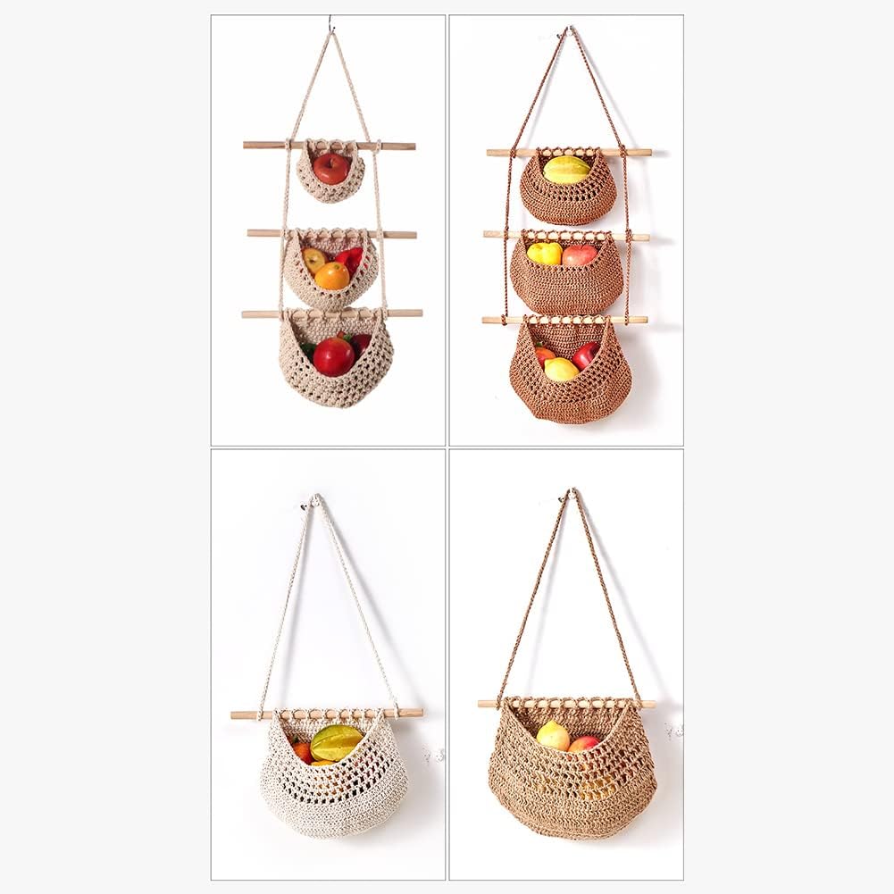 Hanging Fruit Basket, 1 Tier/3 Tier Boho Handmade Woven Wall Hanging Fruit Basket Vegetable Storage Baskets for Kitchen Home Wall Decor