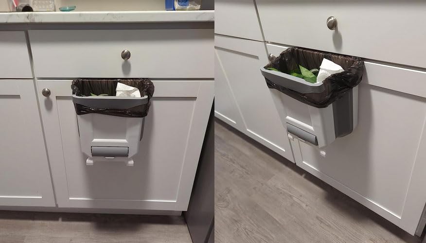 Versatile fit: Hanging trash can With its small size and adjustable hook, this trash can is a perfect fit for most cabinet doors, pantry doors, and cupboards.