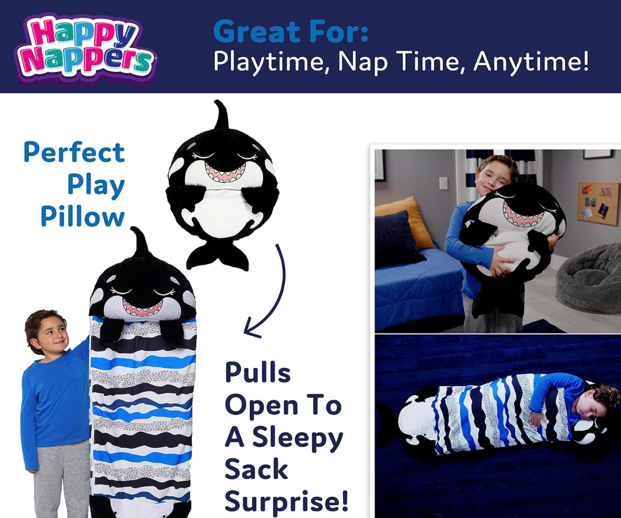 Happy Nappers Pillow & Sleepy Sack- Comfy, Cozy, Compact, Super Soft, Warm, All Season, Sleeping Bag with Pillow- Medium 54” x 20”, Shark