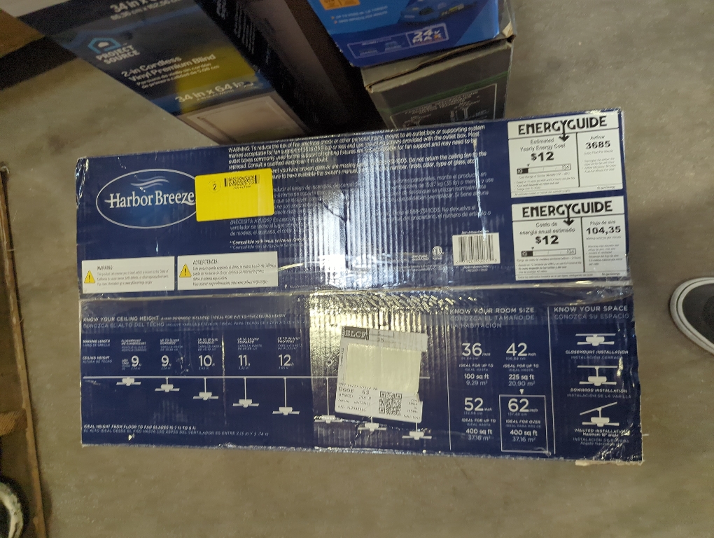 62 inch ceiling fan with 4 arm light kit and reversible blades