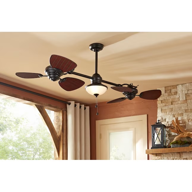 Harbor Breeze Twin Breeze II 74-in Outdoor Oil Rubbed Bronze with Brown Wicker Blades Ceiling Fan With Light 6 -Blade )
