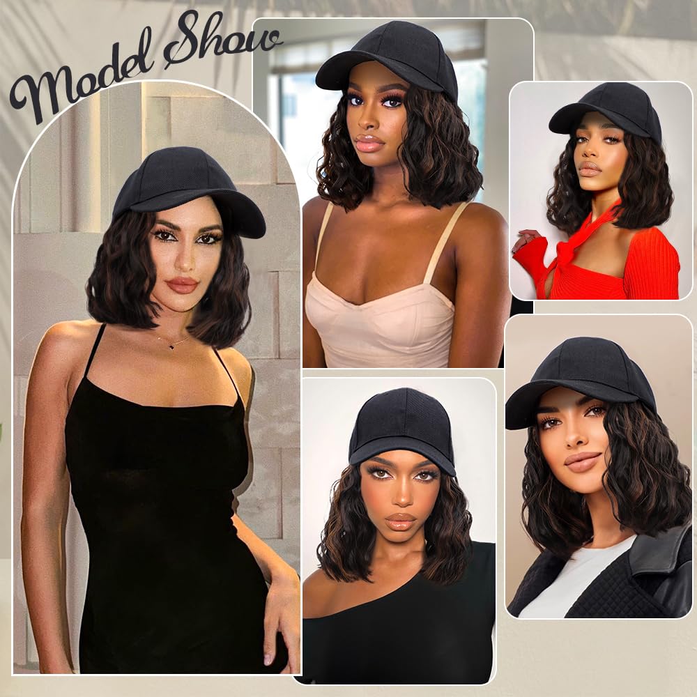Hat Wig Short Wave Baseball Cap Wigs with Curly Hair Extensions Synthetic Wave Adjustable Baseball Hat Wigs for Women(4H30#)