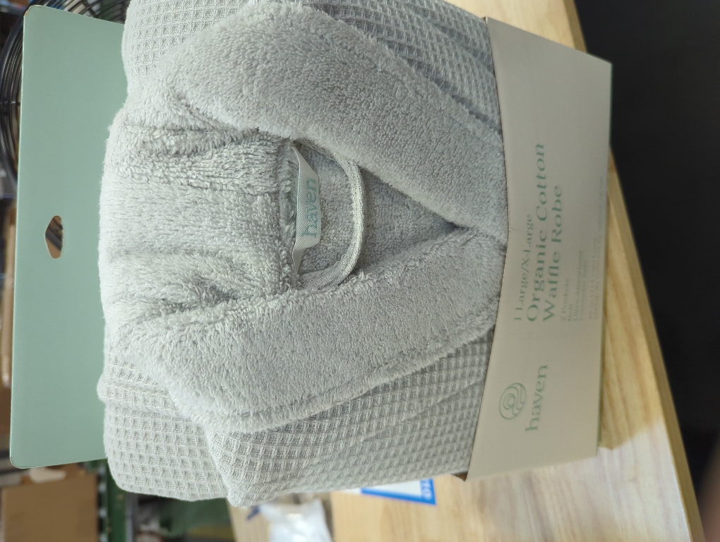Haven Waffle Large/X-Large Organic Cotton Robe in Lunar Rock